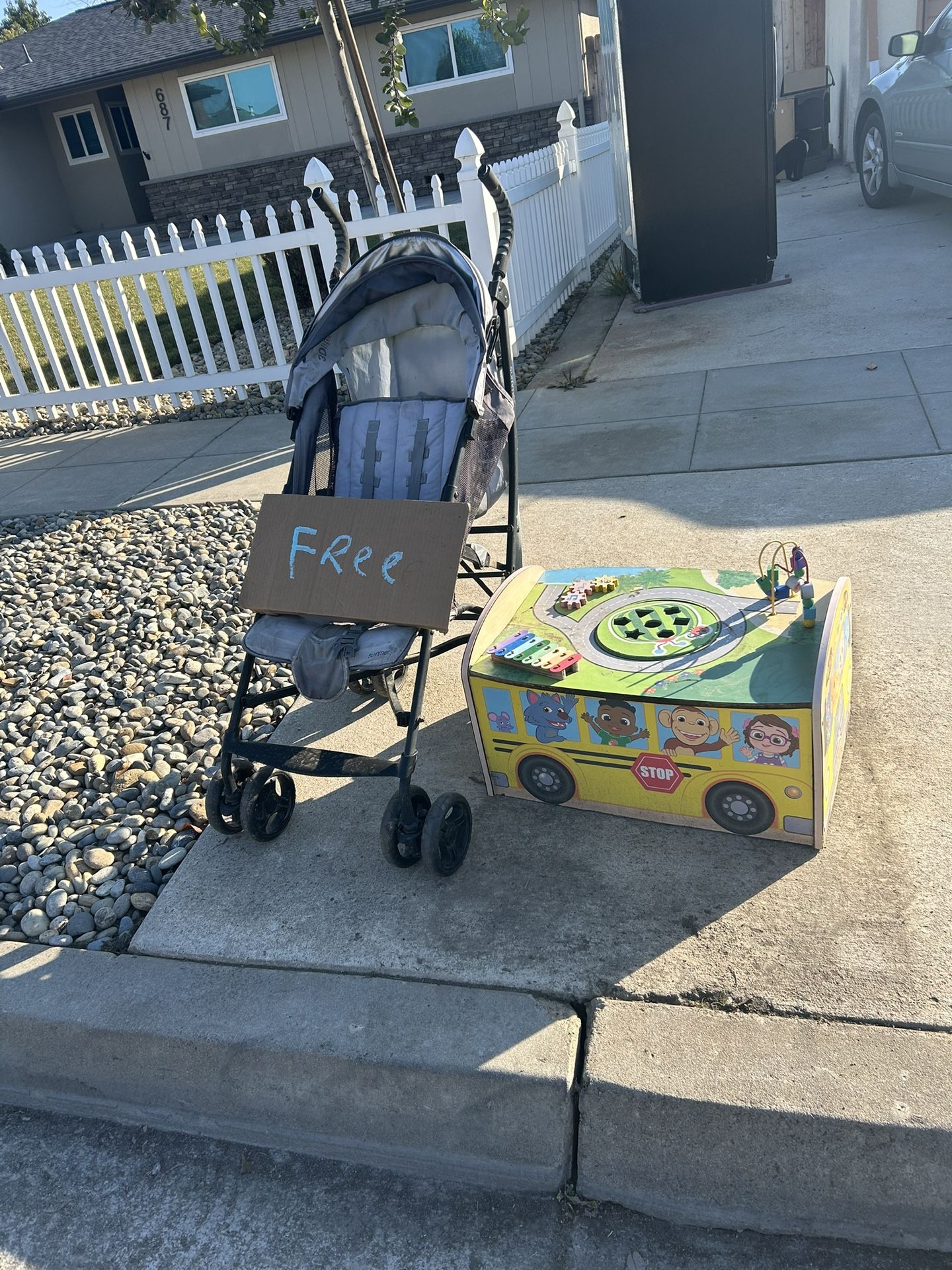 It’s a stroller and kids playset both for free address is 677 e Paul Ave