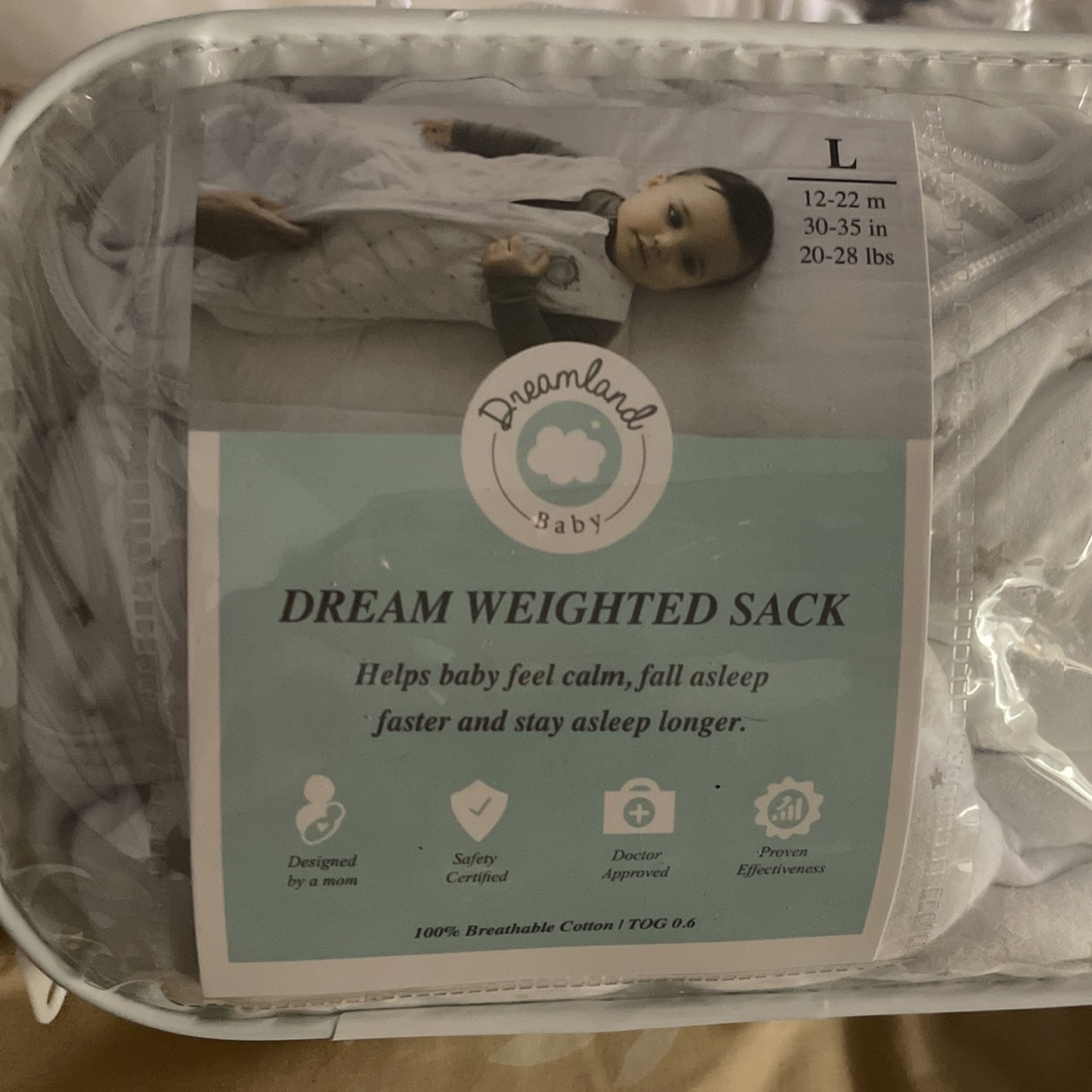Almost new / size Large / 20 to 28 lbs Helps baby feel calm, fall asleep faster, and stay asleep longer.