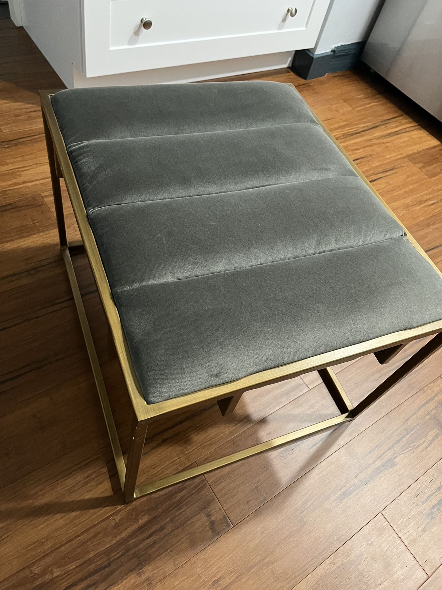 For sale in excellent condition a Grey Ottoman Seat Chair Fabric - Gold metal Frame Brand - West Elm Retails Price $180+ Measurements 22”x19”16” (seats 1 - 2 person)