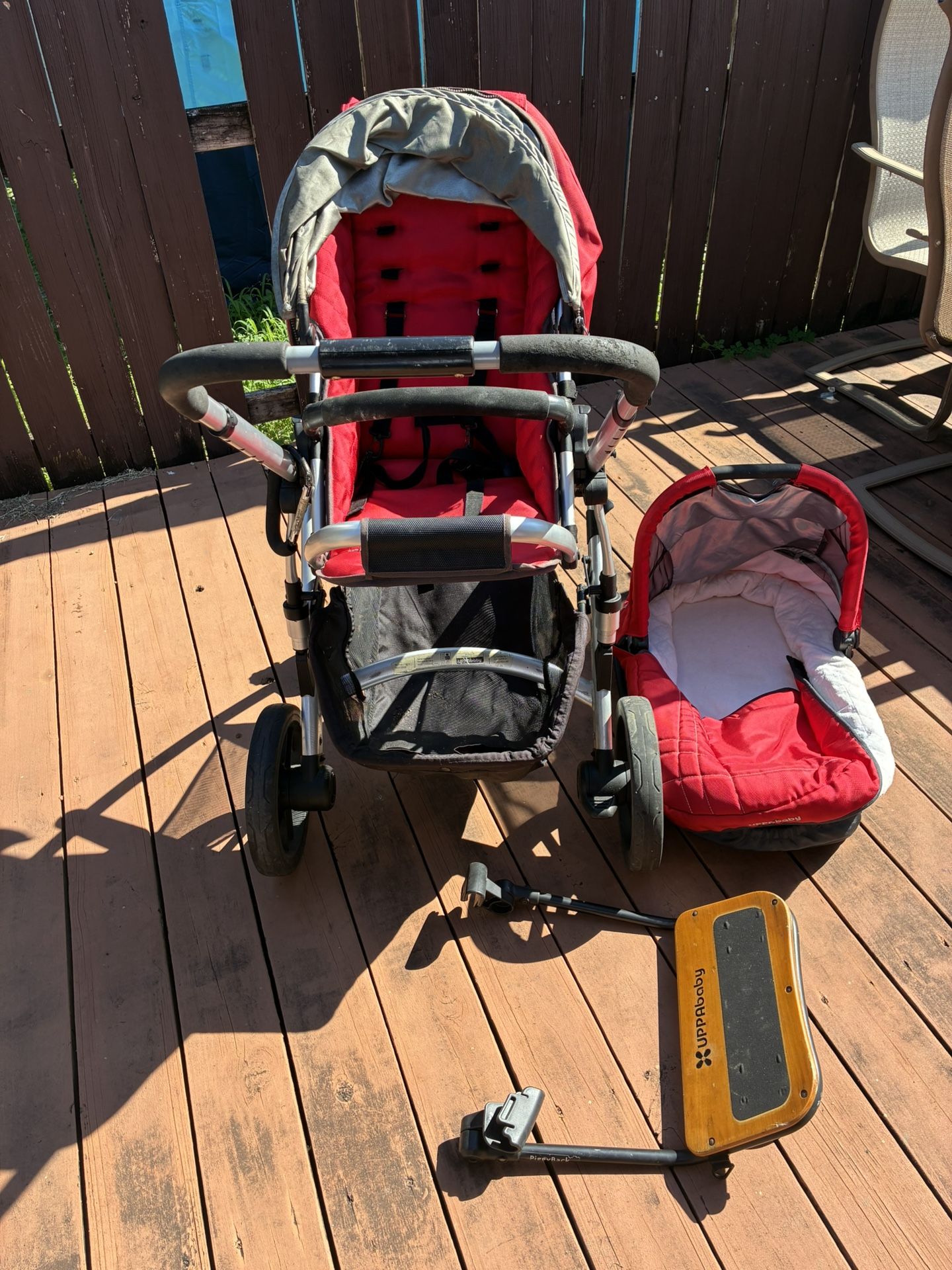 Selling an Uppababy stroller with stand and baby bassinet
