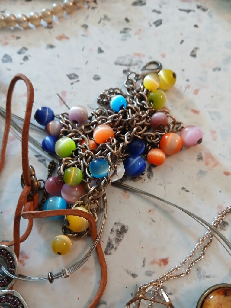 5+lbs of jewelry and watches. Watches just need batteries most of the jewelry in good wearable condition. Glass beads, glass pearls. Bag has lots of great stuff