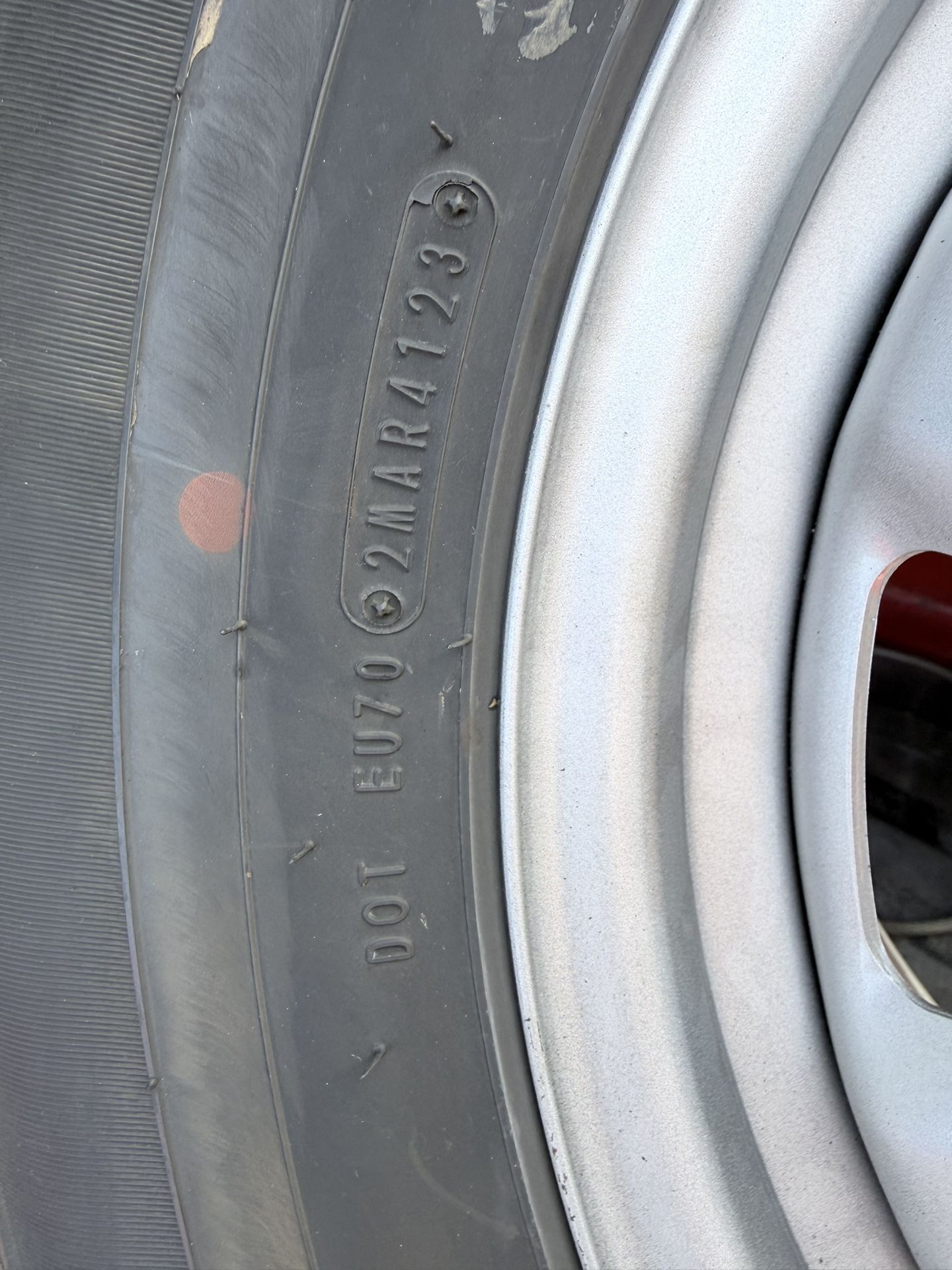 4 2025 OEM ford wheels with 265/70/17 Dunlop Grantrek with 50% good tread left . With lugs and center caps