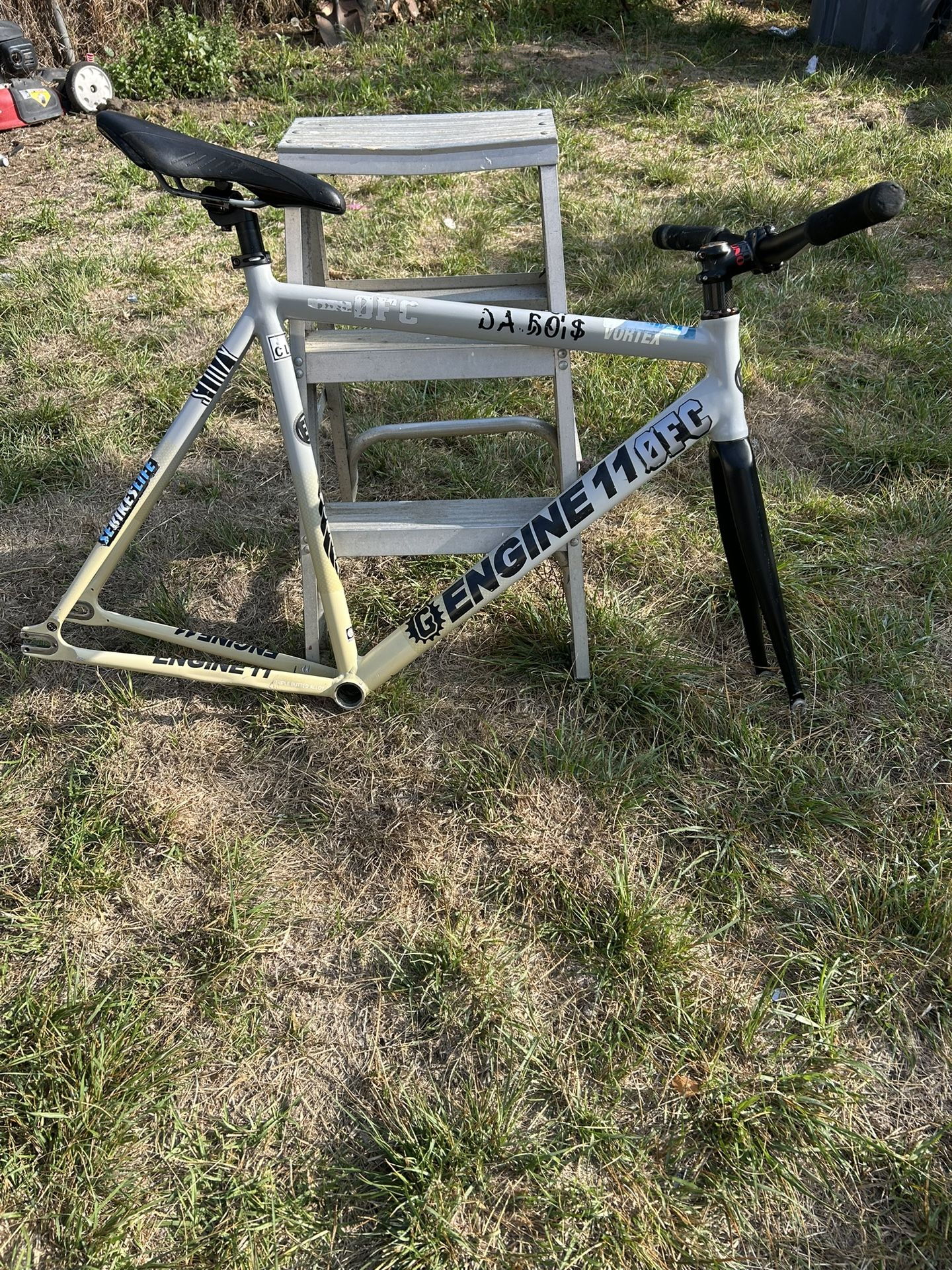 Engine 11 frameset size M 55-56 Comes with fizik seat and seatpost bars and stem carbon fiber spacers back velocity rim with a GOON fork (CASH ONLY)