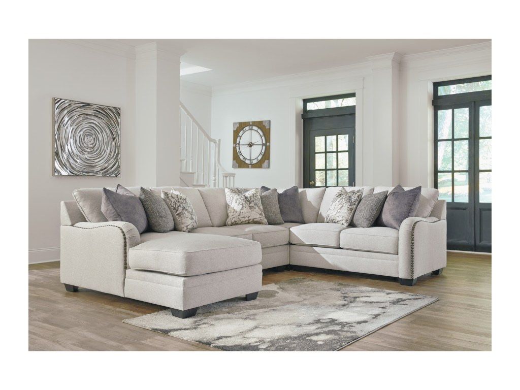 Dellara chalk 4 piece sectional only $1858. Matching storage ottoman and armless chair to make it bigger are also available. In stock come take a look. Factory warranty is included. Express delivery and set up is available Financing options available