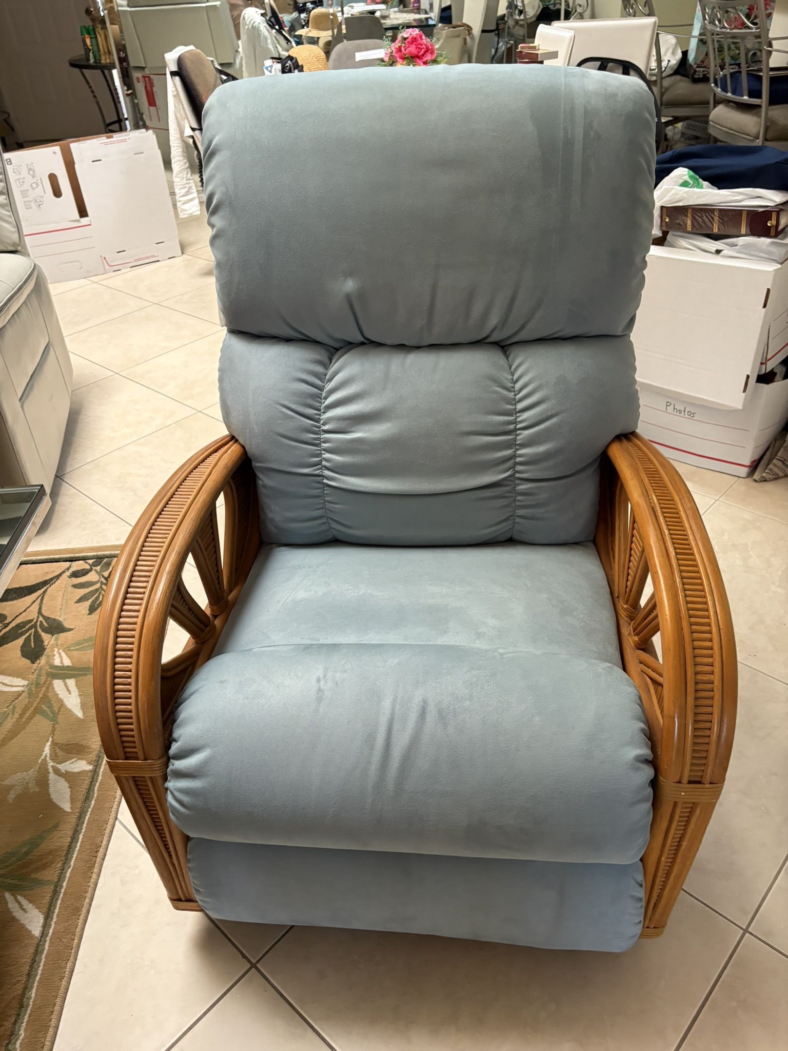Bamboo wood arms with velvet turquoise fabric. Size 43”H x30”W. Slightly negotiable.