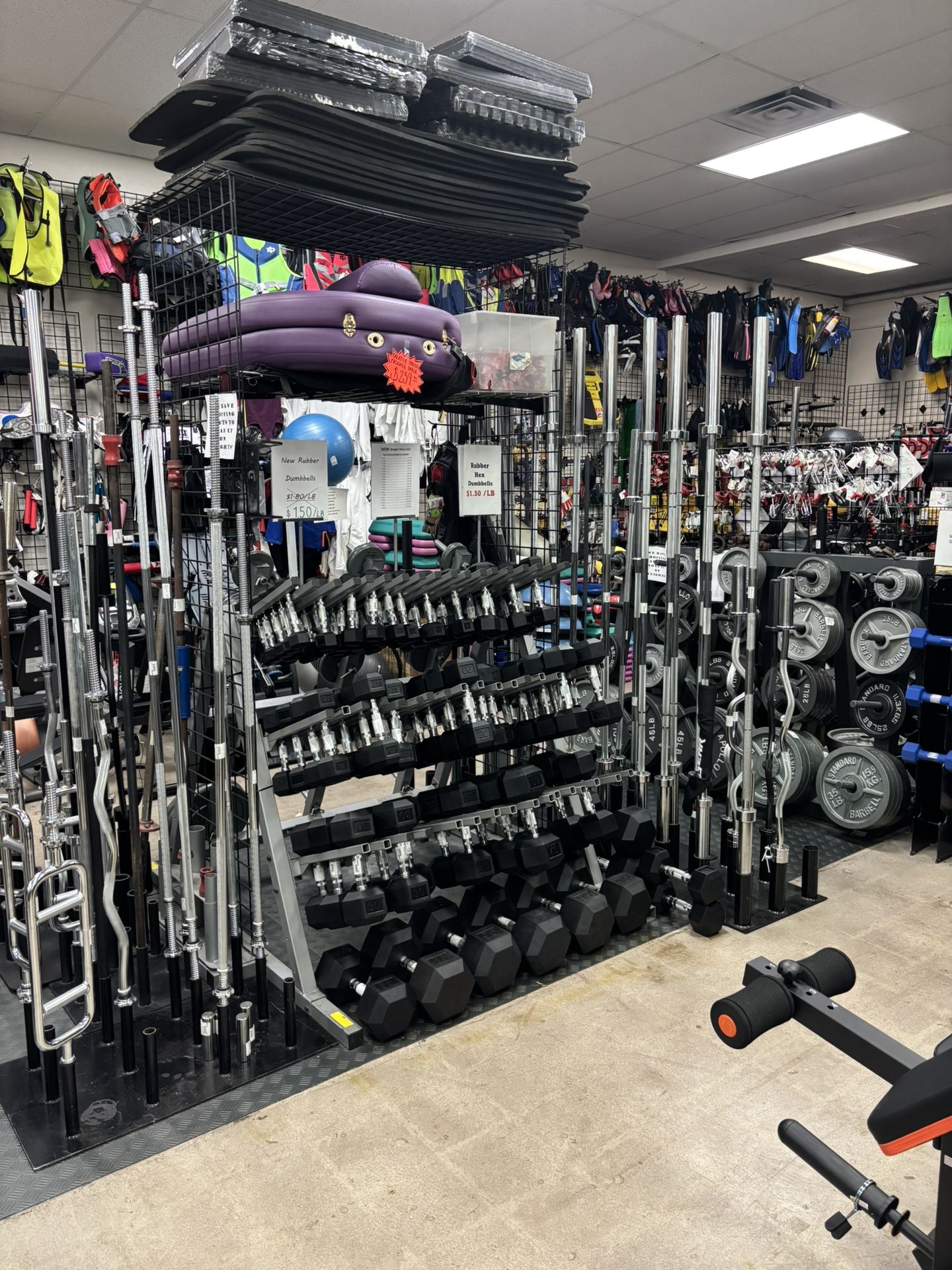 Prices vary for each item We have everything you need to get a home gym set up for the new year! We carry dumbbells, plates, kettlebells, bars, benches, treadmills, ellipticals, exercise bikes, mats, and all other kinds of fitness equipment! Available at C&S Message for more info