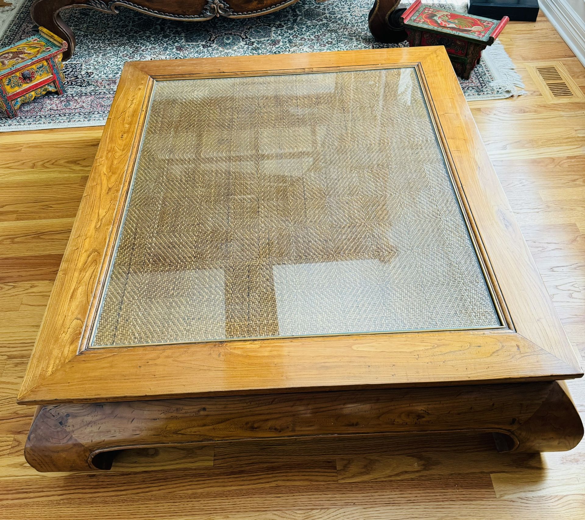 Antique Chinese coffee table made from a daybed. Measures 45x52 in and 14 in high table and matching side table 23x23 in and 20 in high. Excellent condition. Certificate of authenticity included. Must arrange pick up 97007. $1500 for both