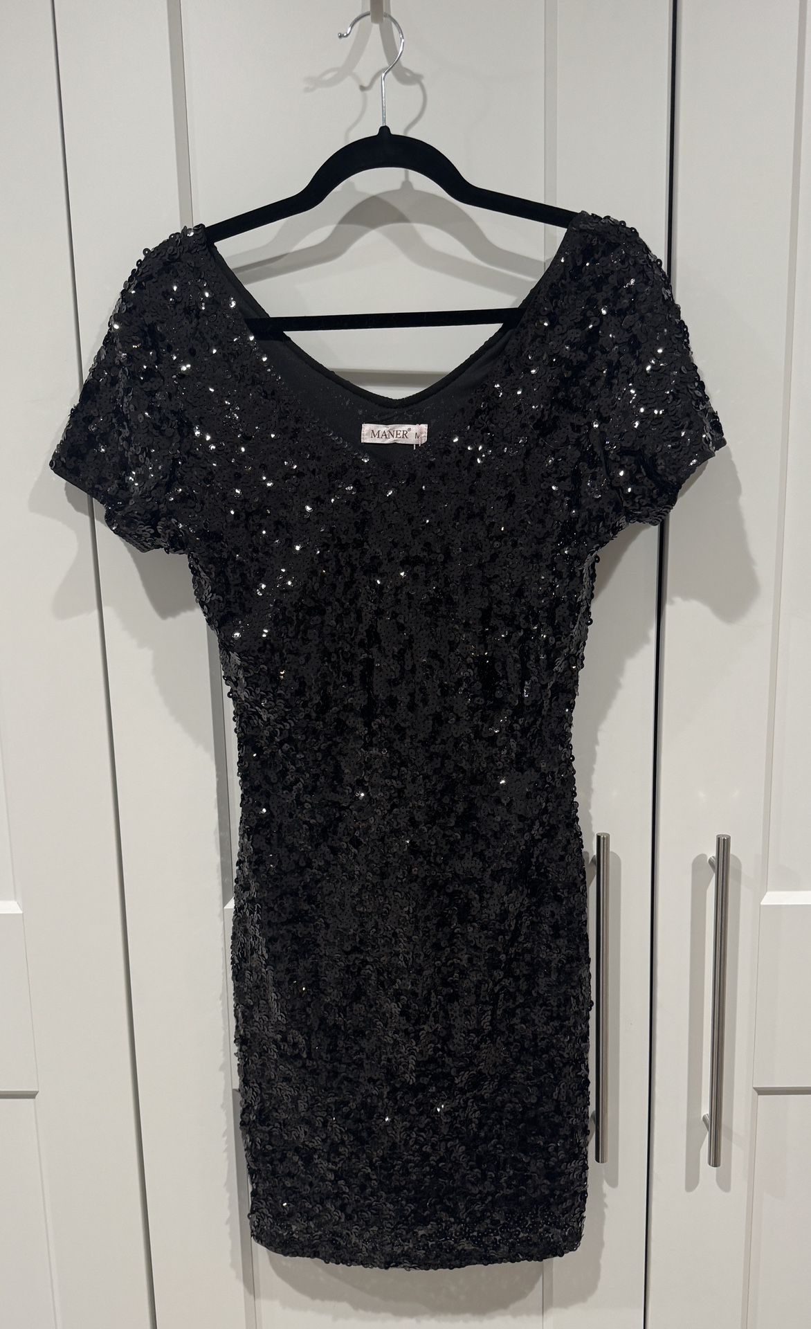 NEW Maner Women’s Size Medium Black Sequin V-Neck Dress