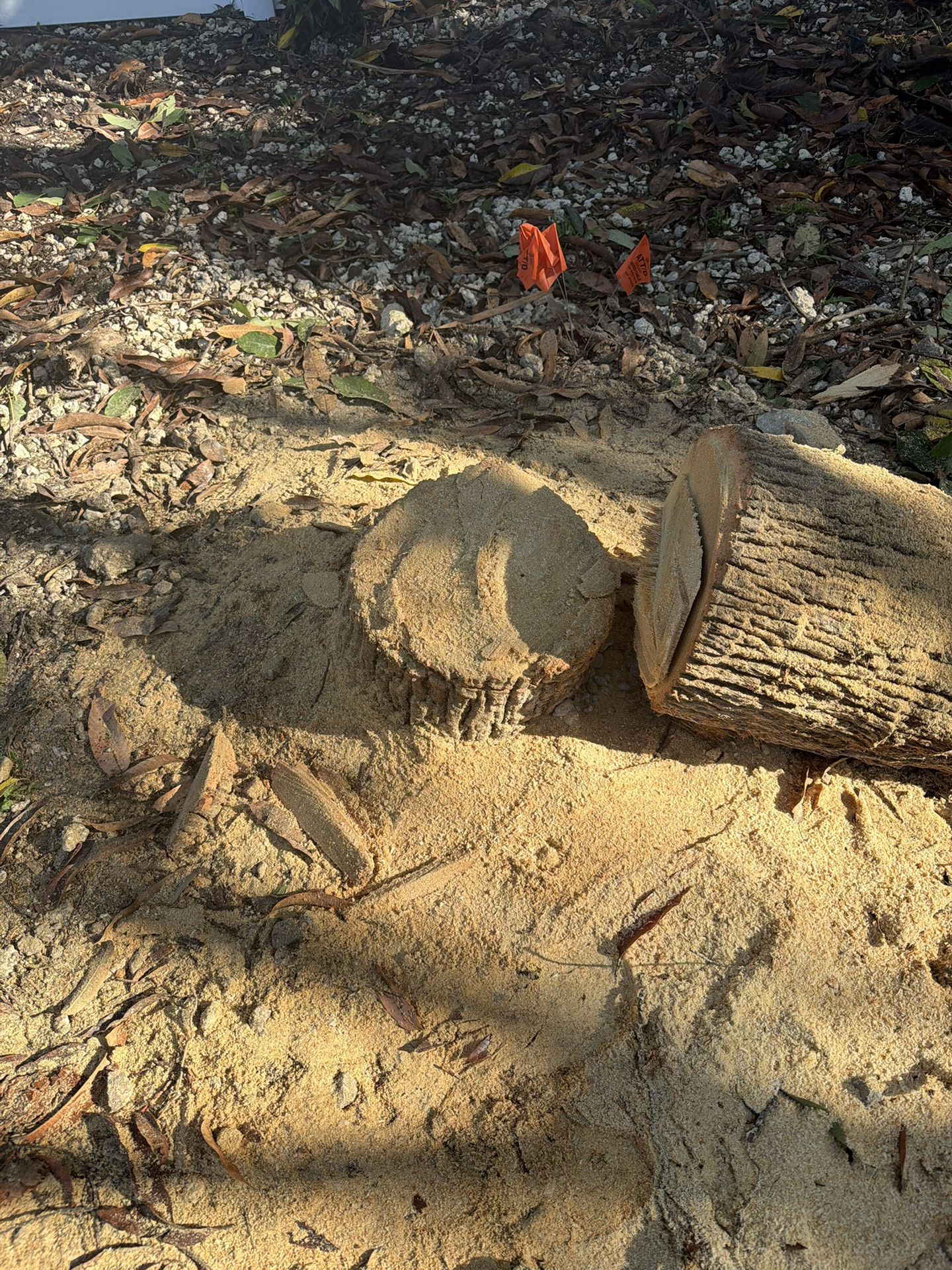 Stumps grinder Palms and trees