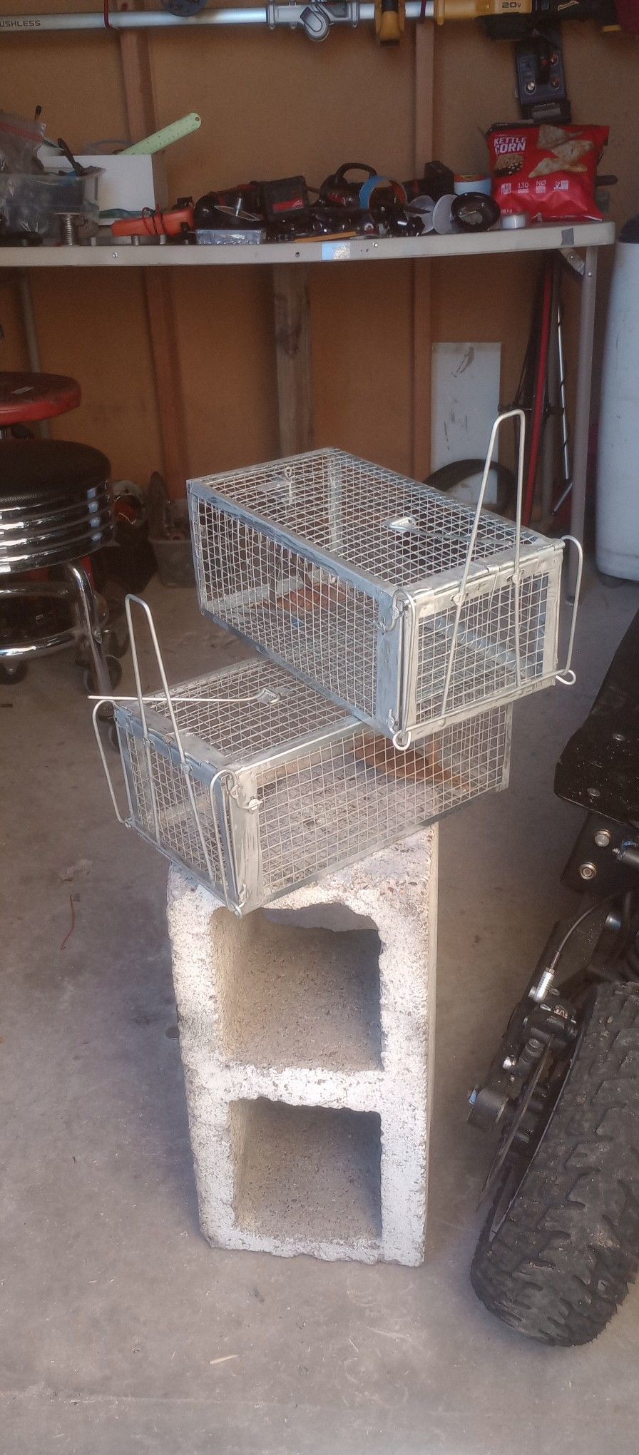 Humane, easy to use, located near higley and Broadway in East Mesa. Ill let both traps go for 20 bucks I've never caught anything in them. I've set them up one time and baited them but did not catch anything. So there still clean
