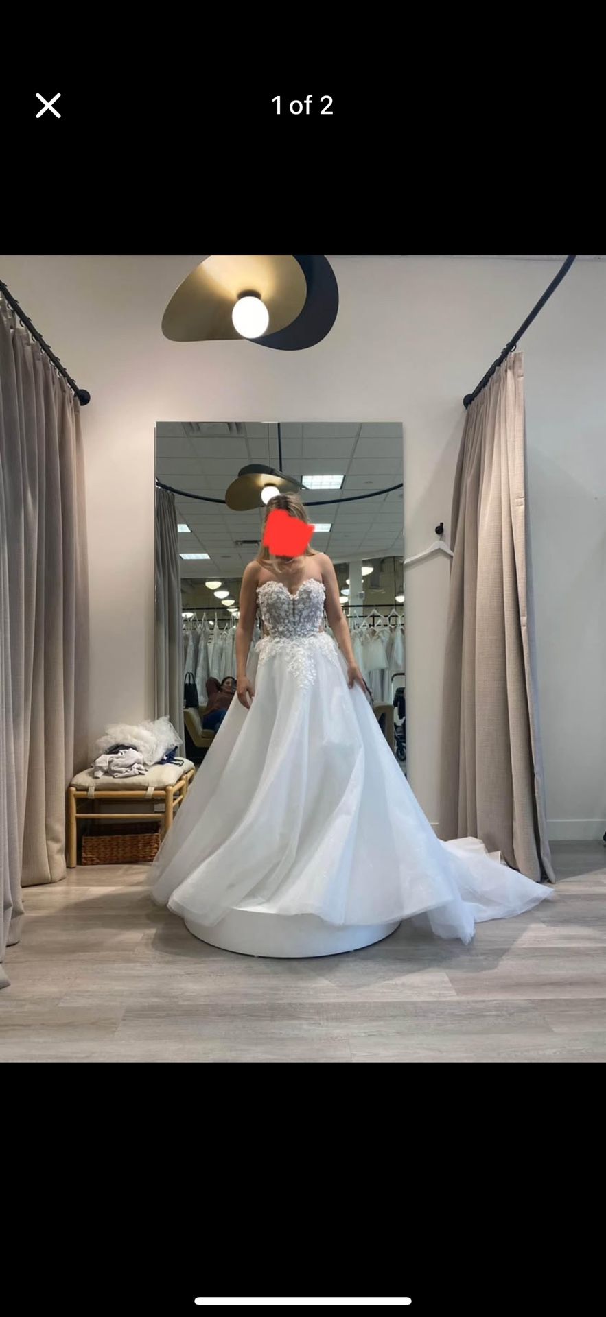 Size 6, best fits for height up to 5’8 total with heels. Never worn. Decided to go with a fitted dress instead. Dress was originally purchased for $1800
