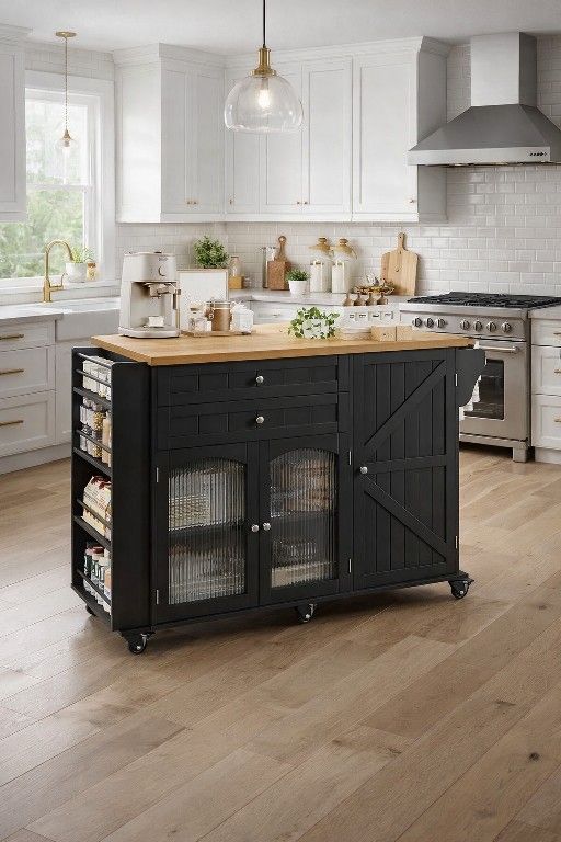 Kitchen Island with Storage, Rolling Kitchen Island on Wheels with Wood Drop Leaf Countertop, Island Table Bar Cart with Spice Towel Rack Portable Kit
