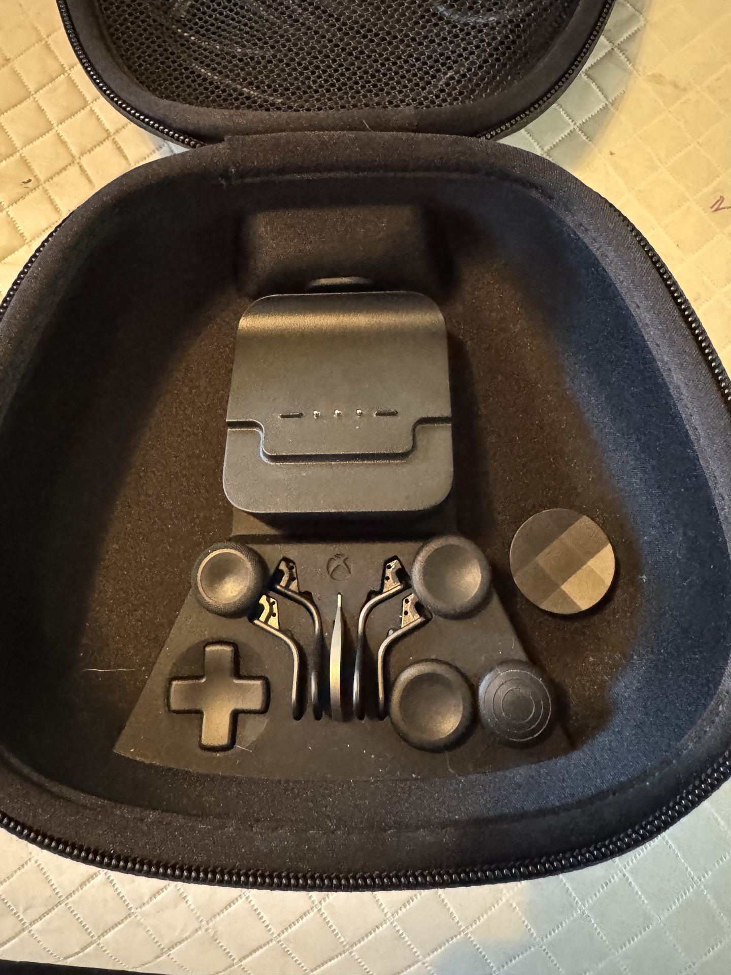 Xbox Component pack for Elite Core and Elite 2 controllers All back paddles and joysticks are present (DOES NOT INCLUDE TALL JOYSTICK, was incorrectly shipped without), tension driver, and D-Pad/Circular D-Pad Comes with original charging base for Elite C/2 controller and USB-C charging cable Includes: 4 - interchangeable joystick 1 - tension driver 4 - back paddles (2-upper, 2-lower) 1 - charging base 1 - USB-C charging cable 1 - component carrying case OBO