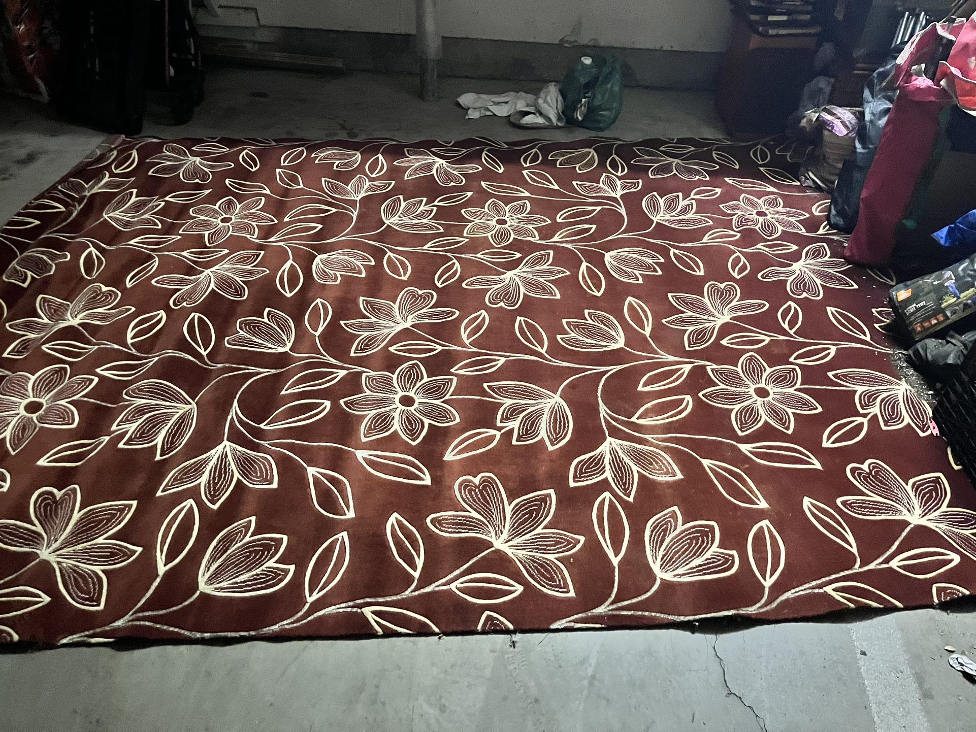 Large (8ft x 12ft) maroon and cream floral rug.. lightly used. Minimal spots. It’s a Great rug!!