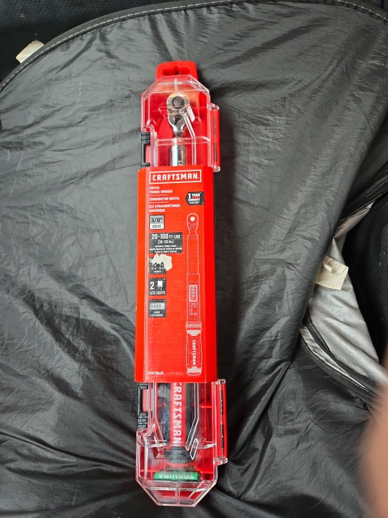*Brand New, Never Used* Craftsman 3/8 " Drive Digital Torque Wrench.. Model # CMMT99435 *RETAILS : $209* **ASKING PRICE : $80 OBO** +• 20 - 100 ft lbs • Large LCD screen for fast readout • Simplistic button design for quick setting and adjustments • Measures in N-M, IN-LB, FT-LB, KG-CM and Degrees to accommodate any vehicle..