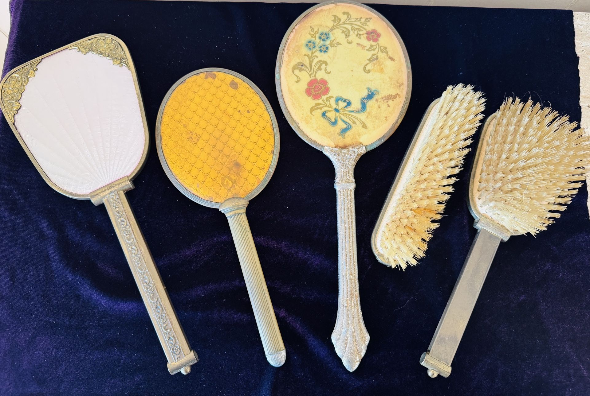 Vintage Hand Mirror and Brush Set Mixed lot of 5