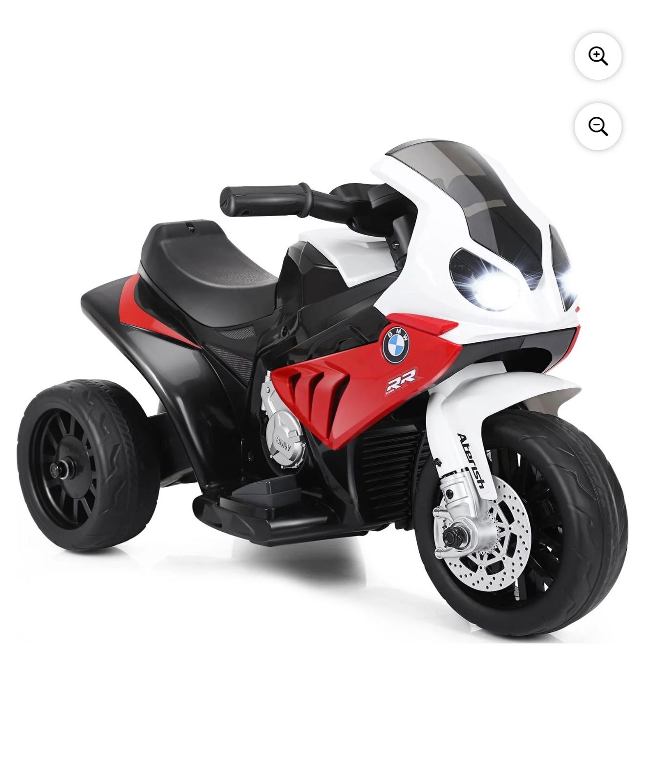 BMW Red black and white toddler motorcycle, haven’t had it to long my daughter barely road on it, slightly used but like new.