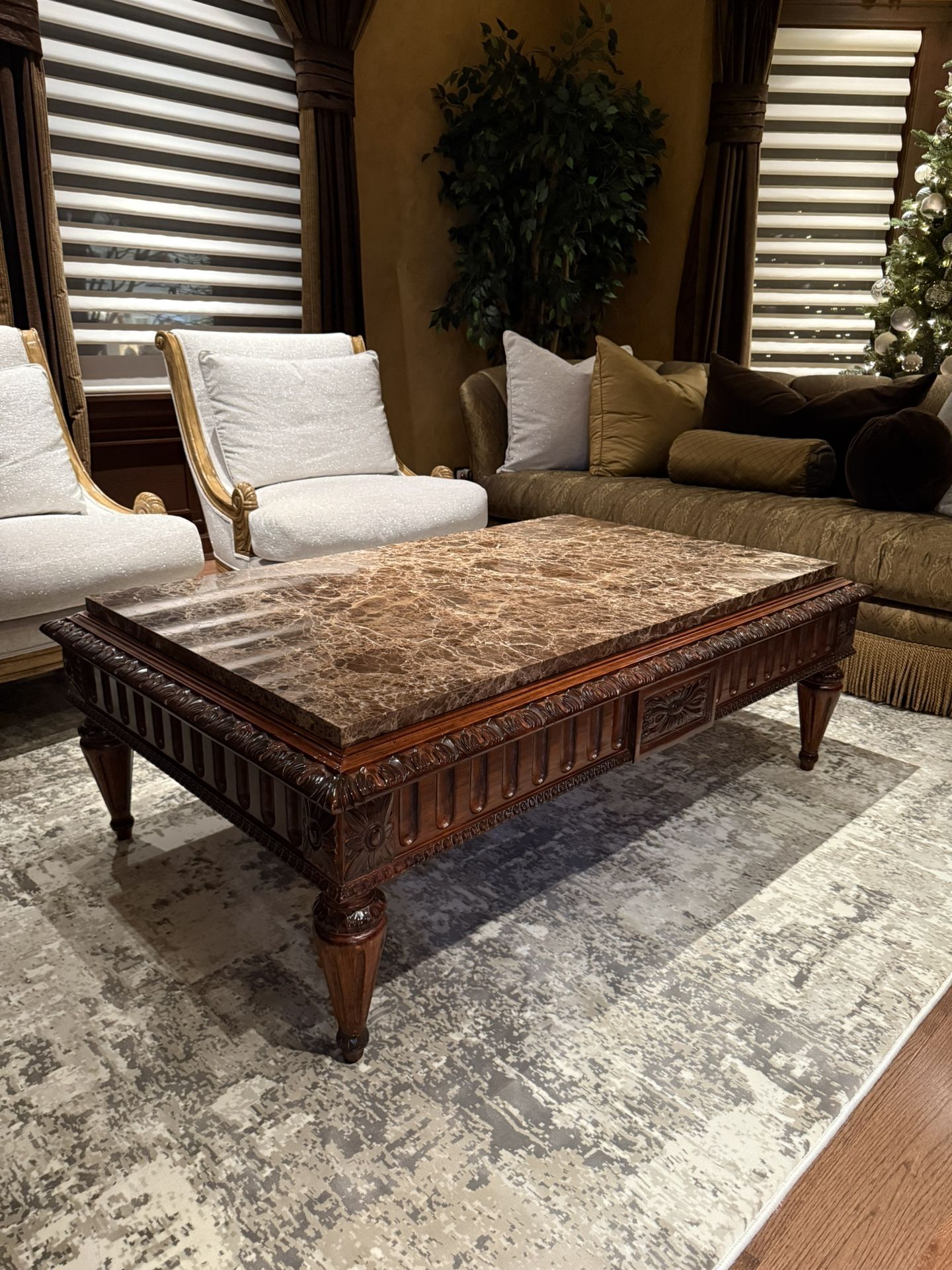 Selling our Jeff Co cocktail table with a beautiful Marron marble top. Sturdy, elegant, and in excellent condition. Dimensions: • Length: 60" • Width: 38" • Height: 20.5" Pickup only, Lincolnwood IL Pay upon pickup: $1,200 First come, first serve Message me with any inquiries! 😊