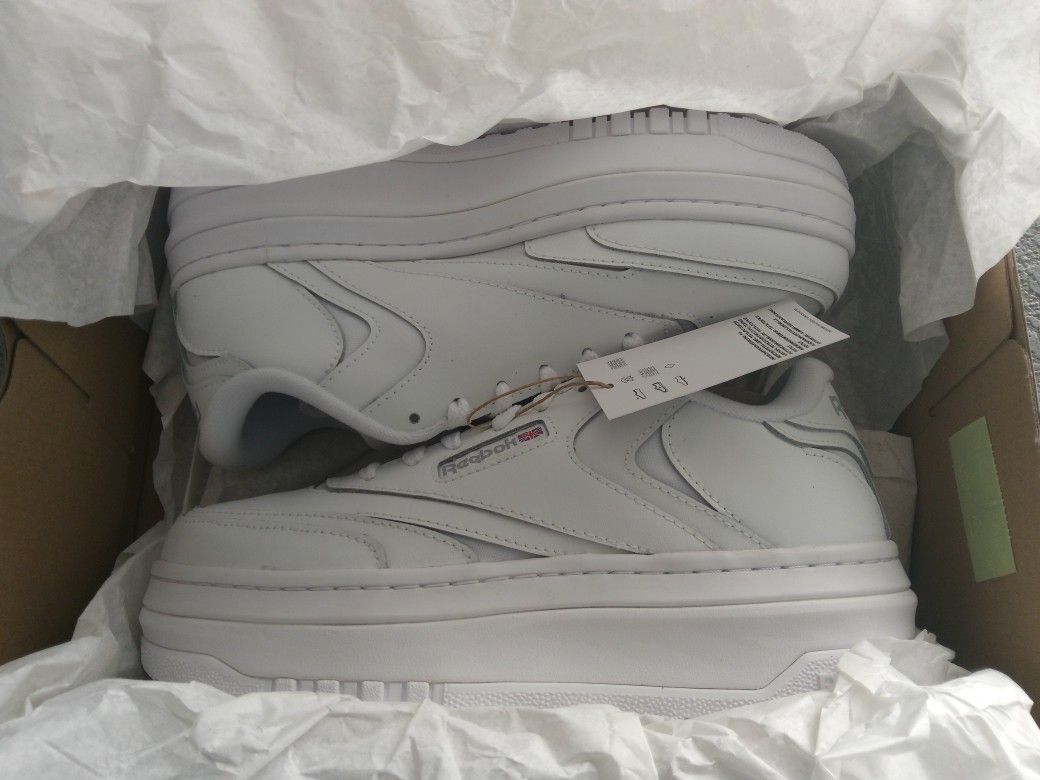 Brand new in the box. Has an exaggerated platform midsole with a geometric design. Outsole has 3D tennis racket effect. Terry cloth tongue and collar. Women's size 9. Retail for $100.