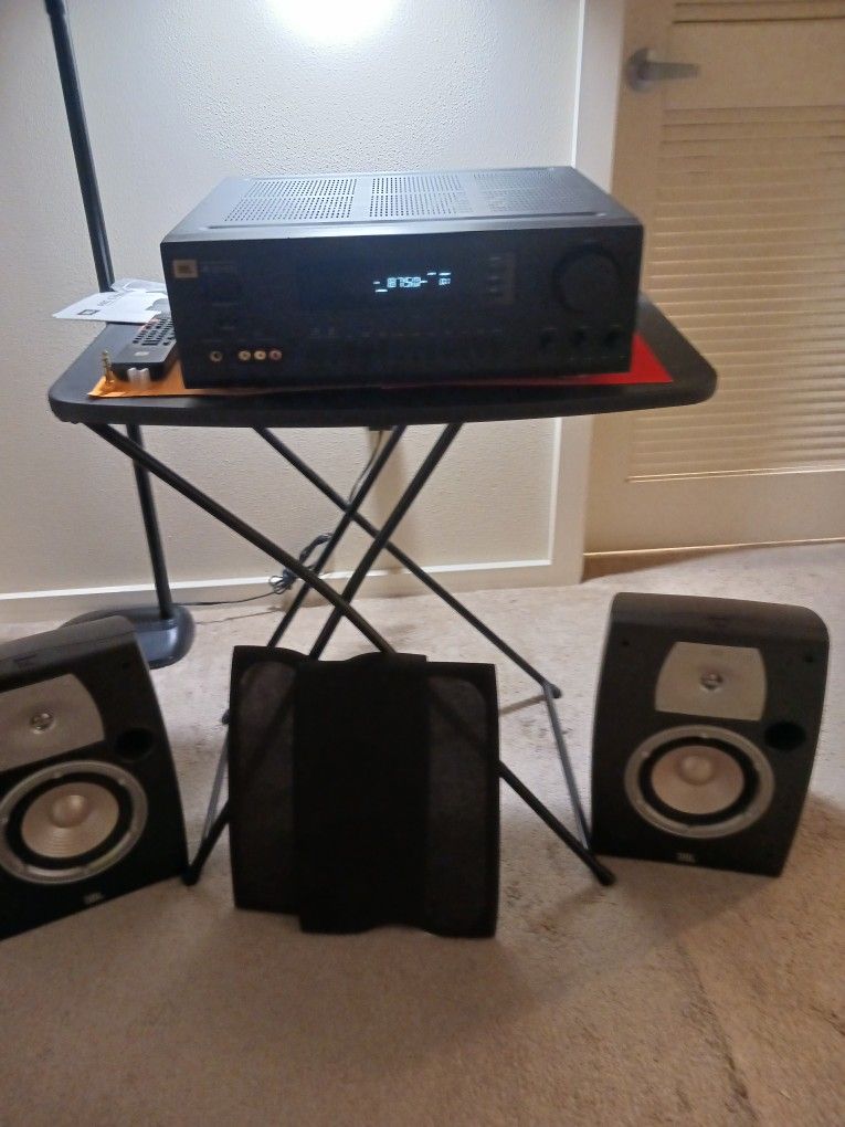 JBL jsr 400 AV receiver with prologic Dolby Surround Sound Gold tipped headphone Jack》audio/video jacks audio preset has concert hall, center mode, bypass AM/FM CD tape vcr1 vcr2 auxiliary TV you can turn the volume up to eleven from 40 ft away in your lazy boy chair with this beautiful JBL matching remote so fun to show people the volume knob cranking up by itself past 11 LOL this unit is from our non-smoking home in very beautiful vintage condition..comes with a pair of beautiful Northridge studio 26 x2 monitors from California the Northridge series The Harman Kardon International Company beautiful speakers with banana clips and built-in stands this stunning matching receiver remote and speaker set is $320 this would make a beautiful Christmas gift for somebody that loves music that sounds exceptionally clear and high-end quality & warm tones no venmo please serious inquiries can text anytime for address and local pickup Time in the West Seattle area thanks :-)
