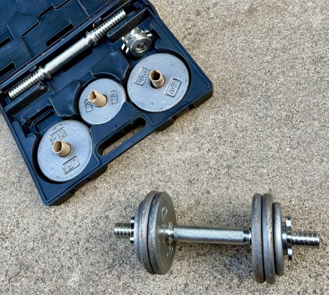 Cast iron adjustable spin-lock Dumbbell set 1" inch Cast iron plates 8ea 2.5 Ibs plates 4ea 1.25 Ibs plates
