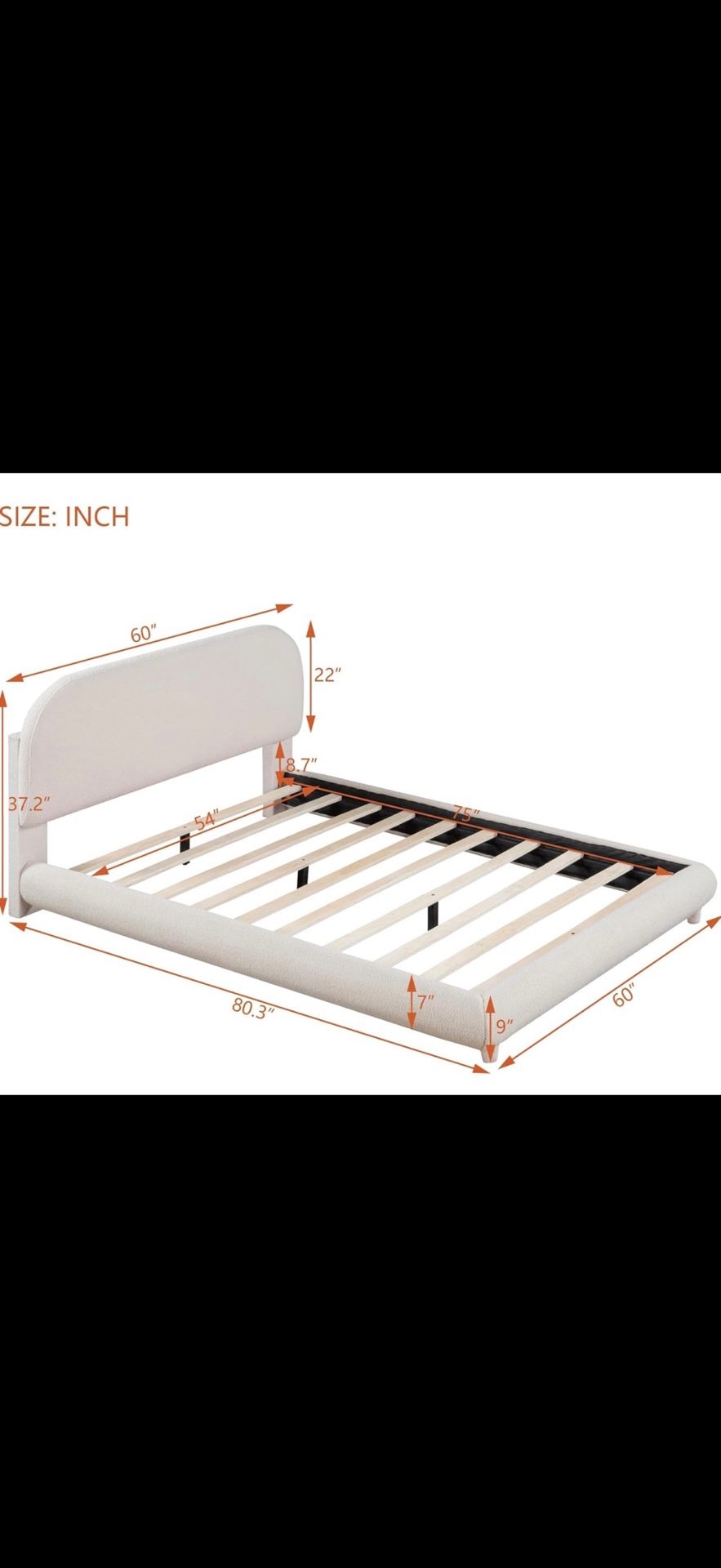BRAND NEW condition since it was put together and never used! I purchased this bed and it was the wrong size for my mattress. Shortly after that it was taken apart, therefore unassembled for easy transport! [Dimensions] Overall Product Dimension: 80.3"L x 60"W x 37.2"H. Mattress not included.