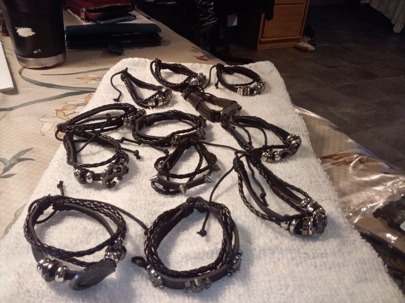 All Leather Bracelet. For Male/Female Have 2 Of Each Kind $3.Each A Min Of 3 At Least All Black To