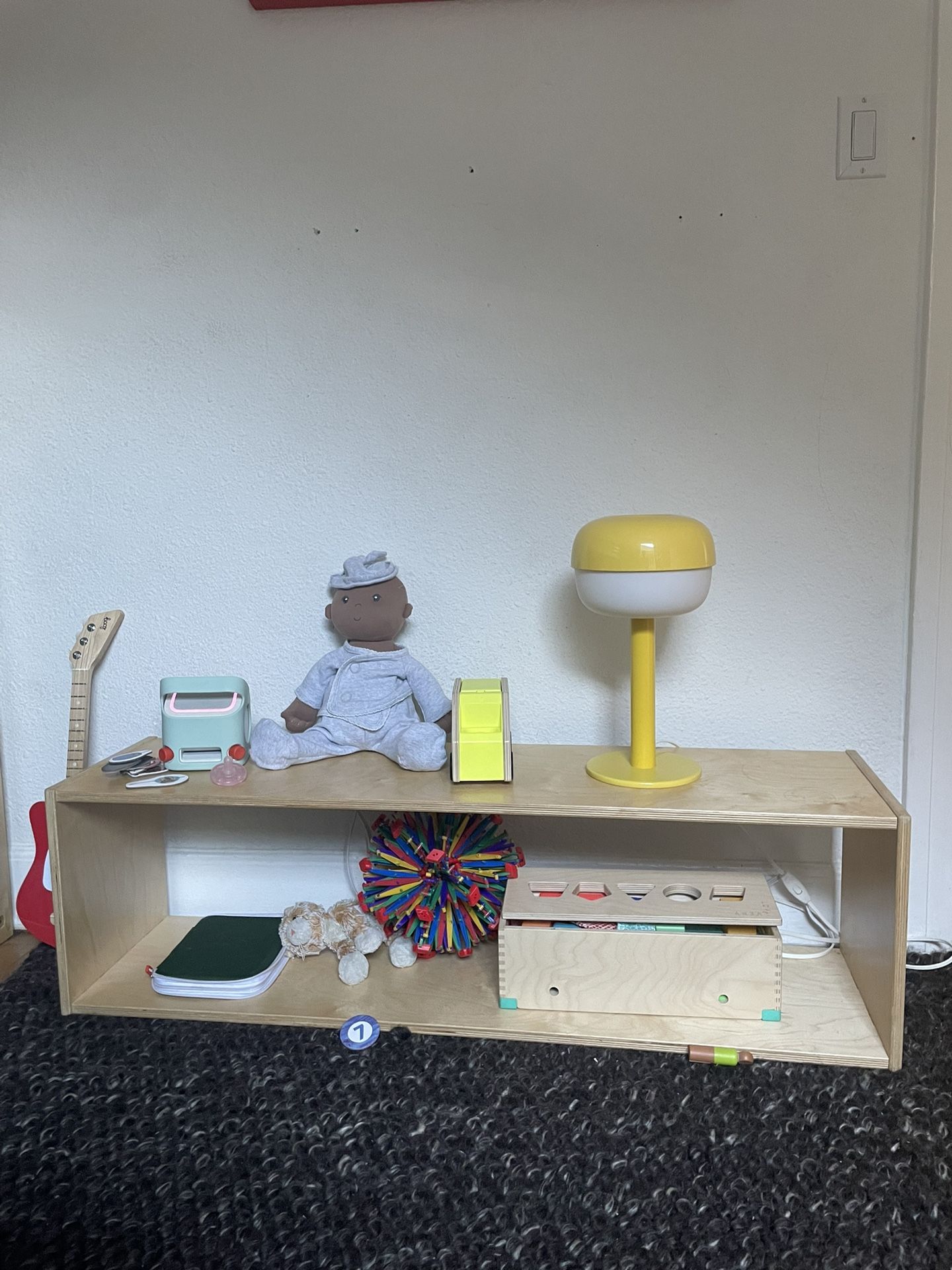 Brand: Sprout Kids. W 44’’, D= 11.5 “, H= 13”. Modular pieces no screws for assembly