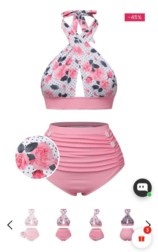 Pink 1940's Floral Cross Halter swimsuit. Size XL 10-12. Brand new.