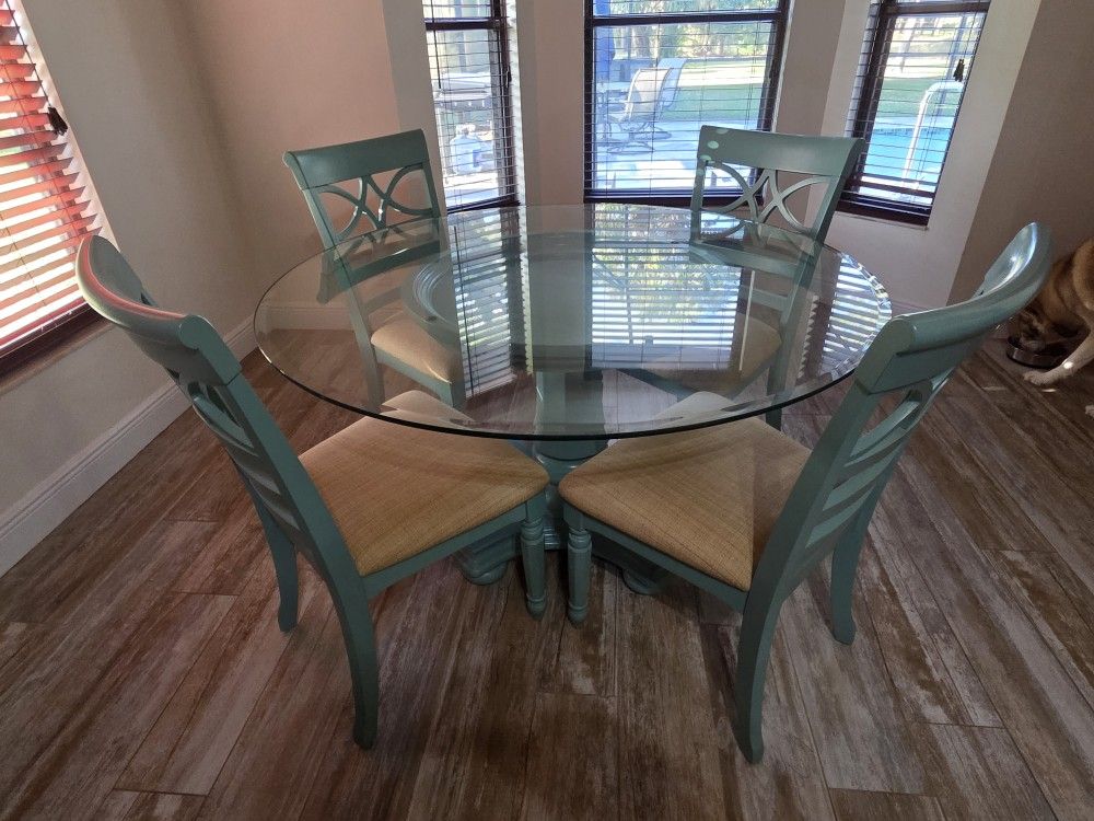Green Cindy Crawford Glass Kitchen Table with 4 chairs