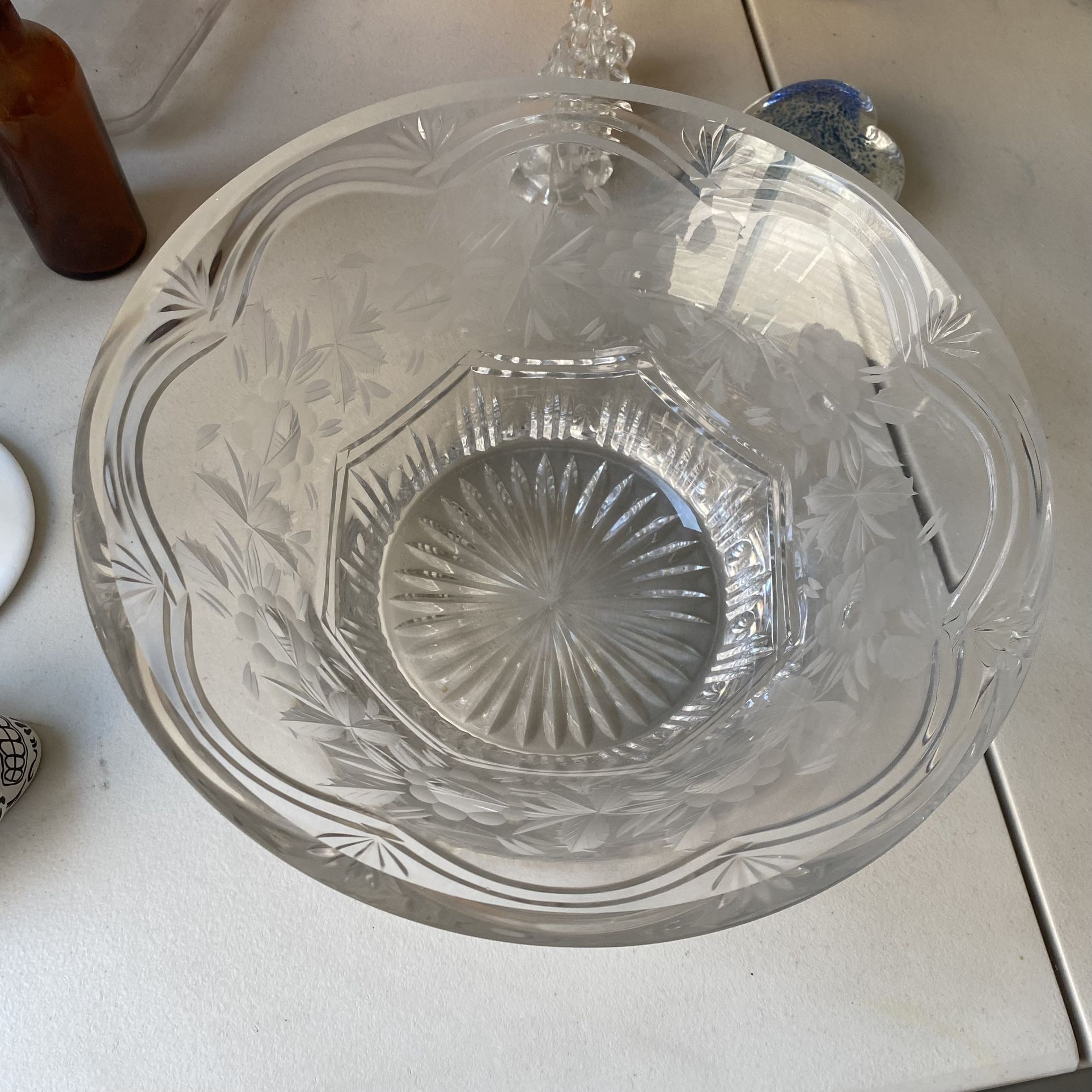 Very Heavy Leaded Glass Bowl. Please see pictures. There is a tiny chip on the edge. I didn’t even notice it until I was cleaning it.