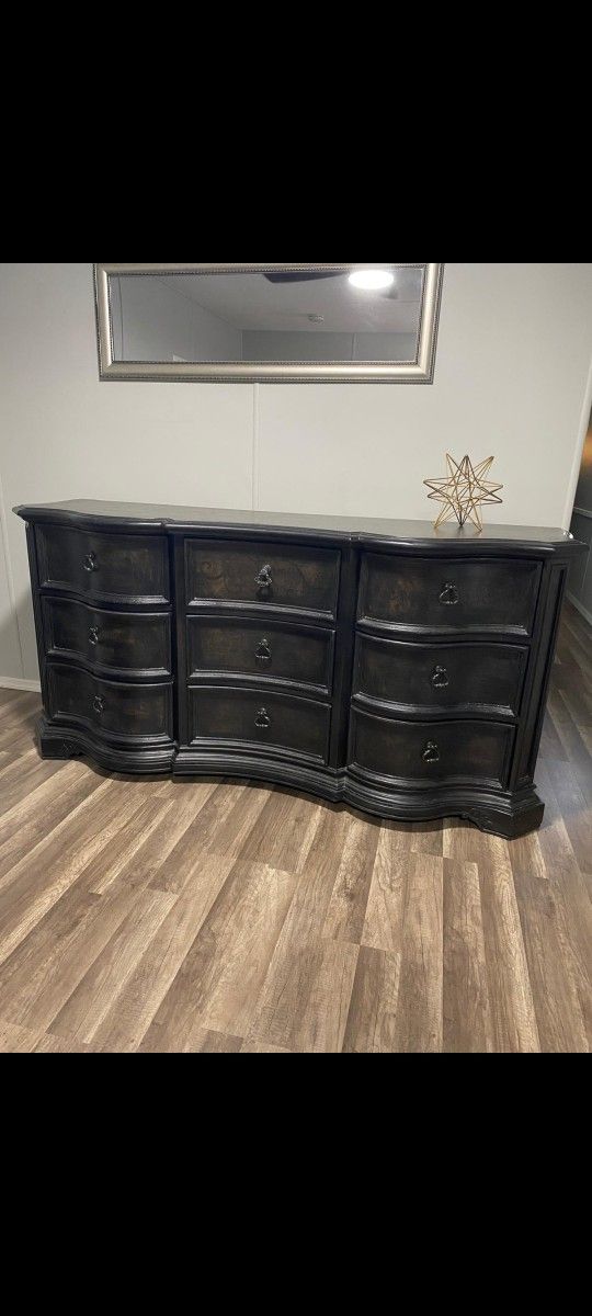 BEAUTIFUL LONG BLACK 9 DRAWERS DRESSER