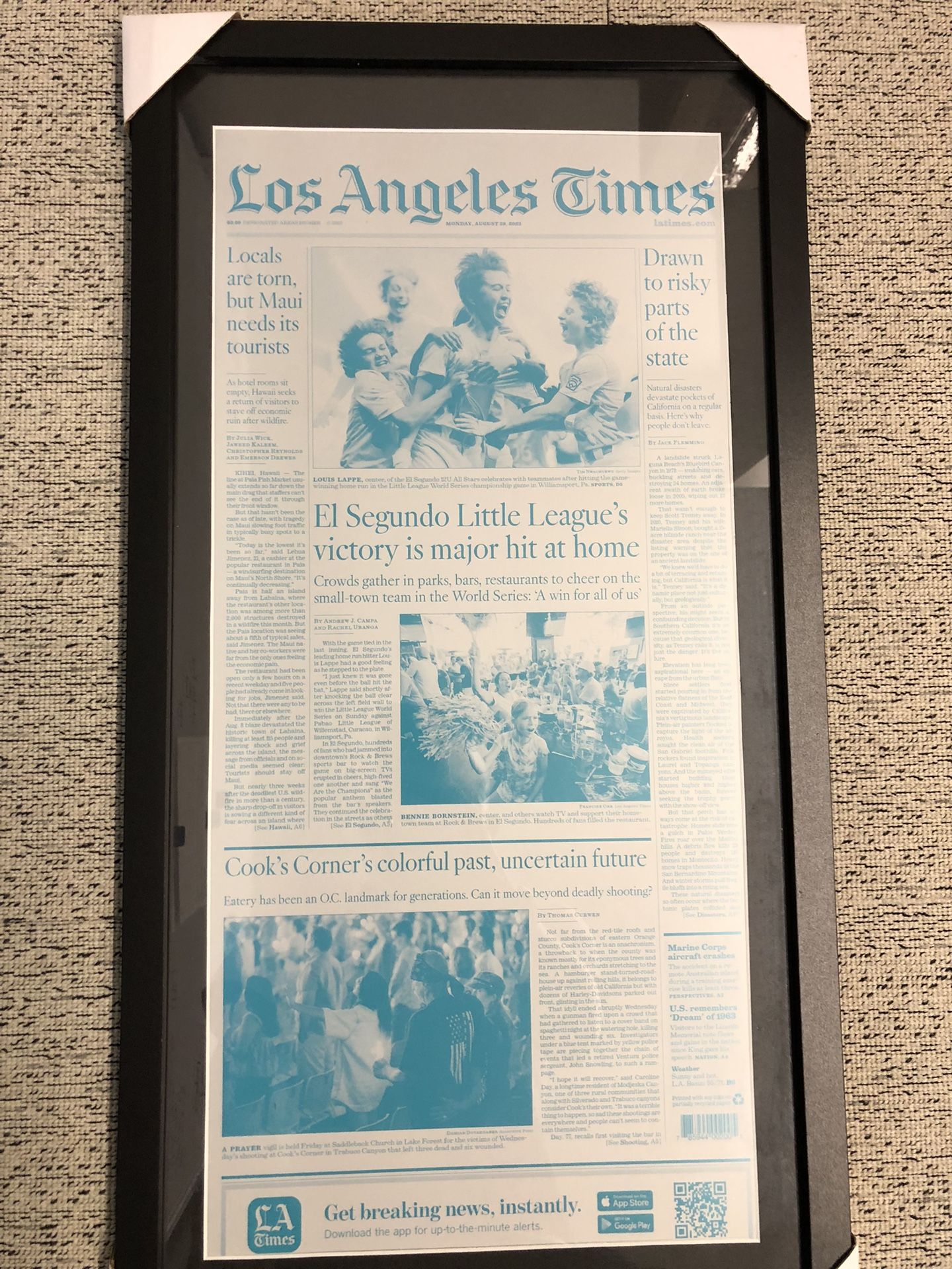 El Segundo Wins Little League World Series - Los Angeles Times Metal Printing Plate