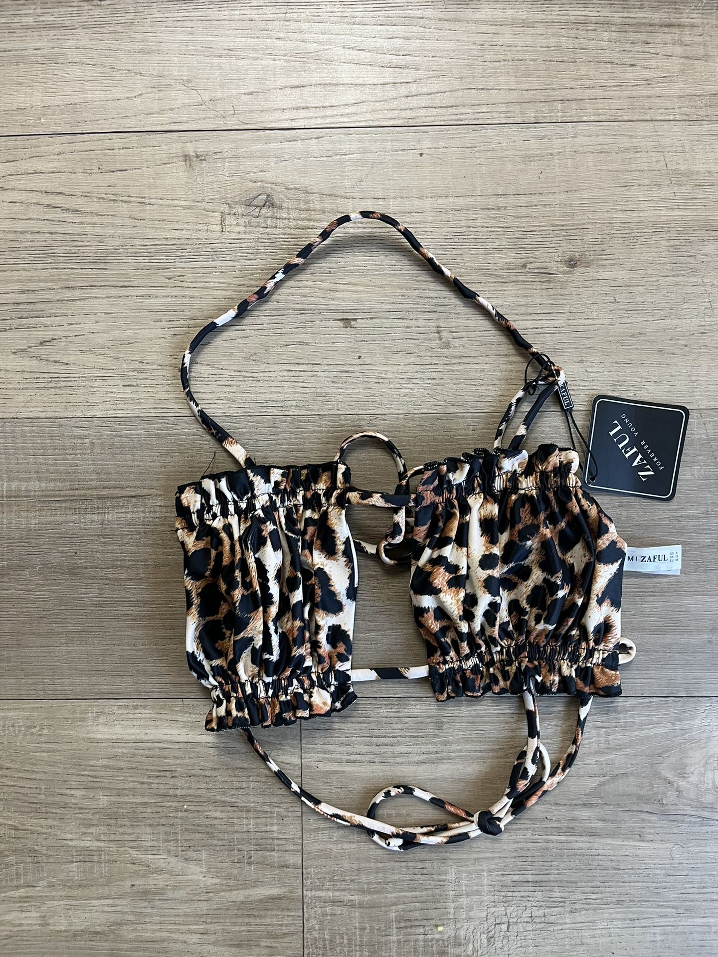 New with tags. Leopard print bikini top with adjustable and removable straps. Pair with your favorite bottom.