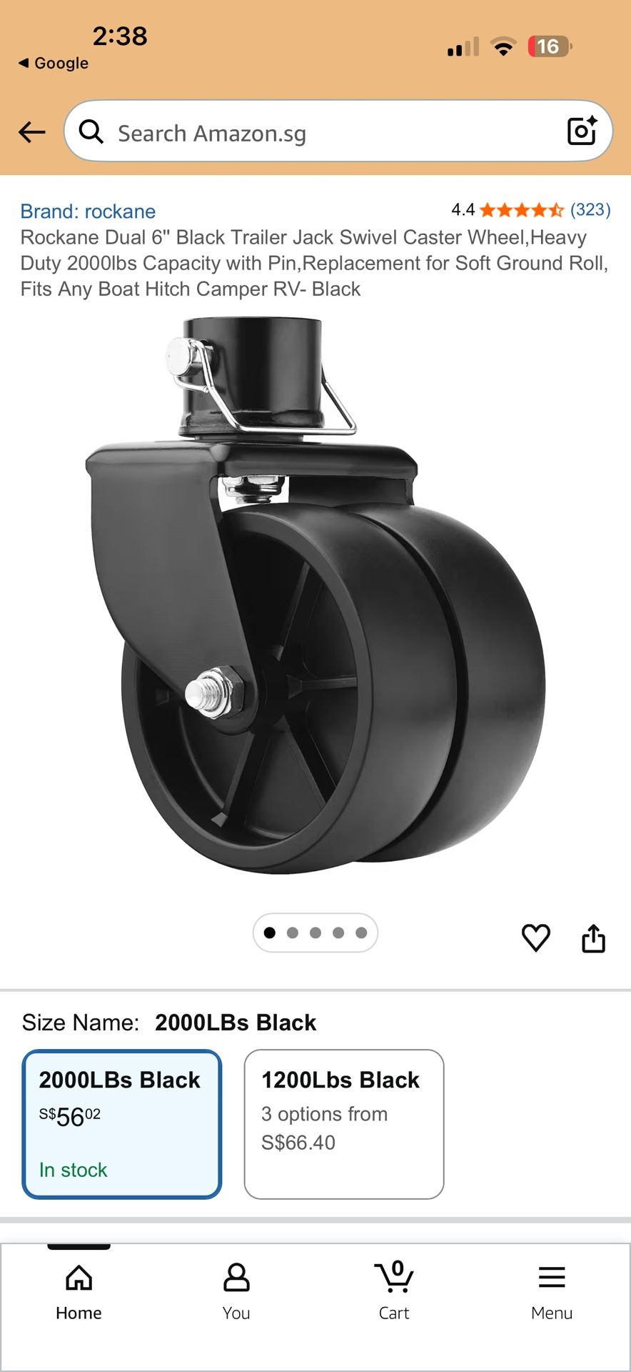 Rockane Dual 6" Black Trailer Jack Swivel Caster Wheel,Heavy Duty 2000lbs Capacity with Pin, Replacement for Soft Ground Roll, Fits Any Boat Hitch Cam