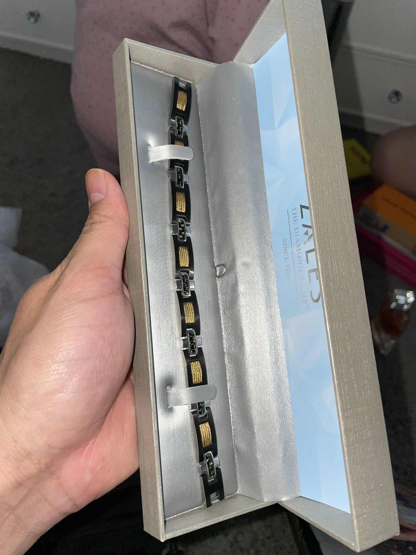 Zales Stainless Steel & Carbon Fiber Mens Bracelet