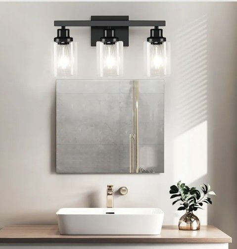 3-Light Bathroom Vanity Lamp, Modern Black Wall Lights with Clear Glass Shades, Bathroom Wall Light for Mirror, Living Room, Bedroom, Hallway
