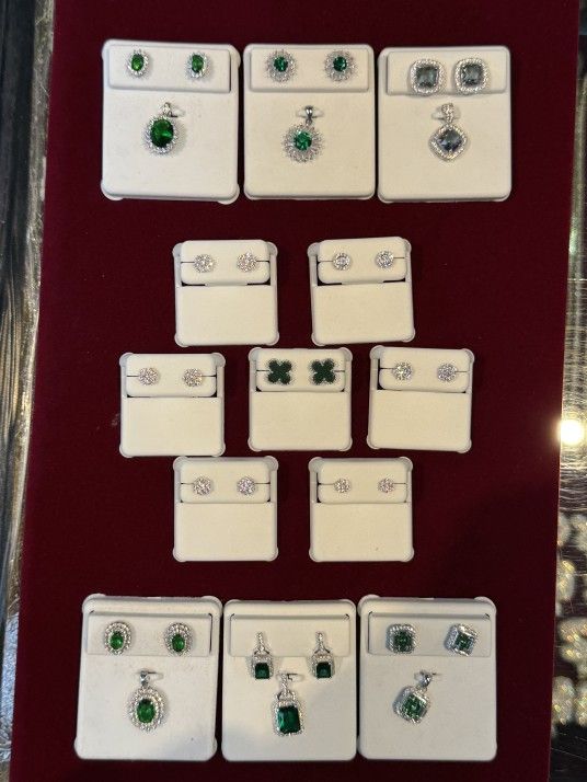 π Emerald green color stone set Necklace and matching earrings Elegant design Price: $75 β¨ Silver earrings dipped in 14kt gold Beautiful shine Light weight and stylish Price: $30
