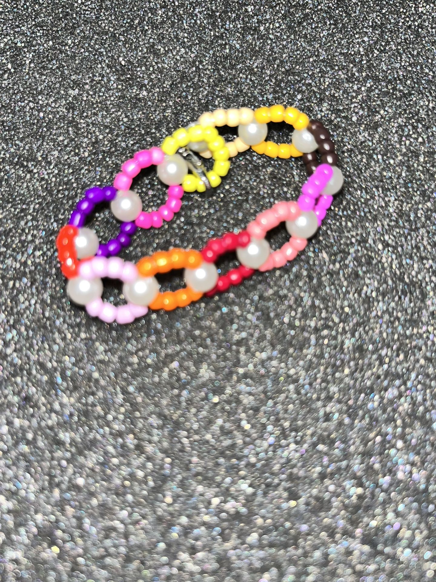 Baby bracelet with glass and plastic beads