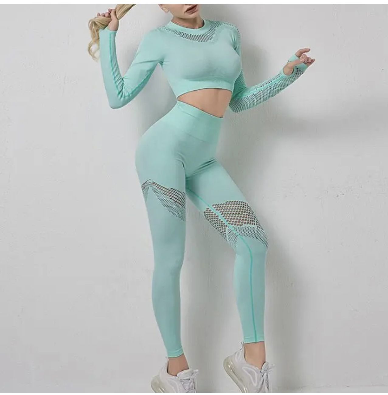 yoga set bra and legging set women hight waist fitness,gym cloth 2 piece tracksuit sportwear Aqua Marine , Small , Medium, Large