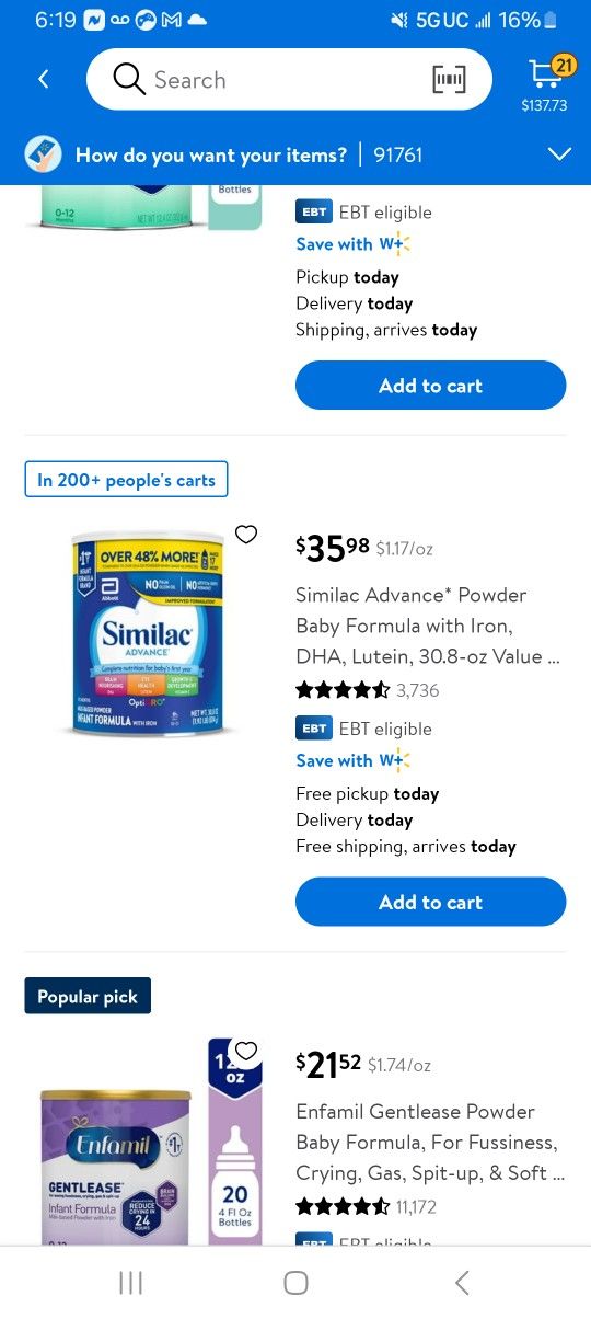 Any formula listed in pictures or on https://offerup.com/redirect/?o=d2FsbWFydC5jb20= at half price. (Please allow 1-2 days for pickup from time you send message with order choice) Accepting best offers on larger quantity orders!