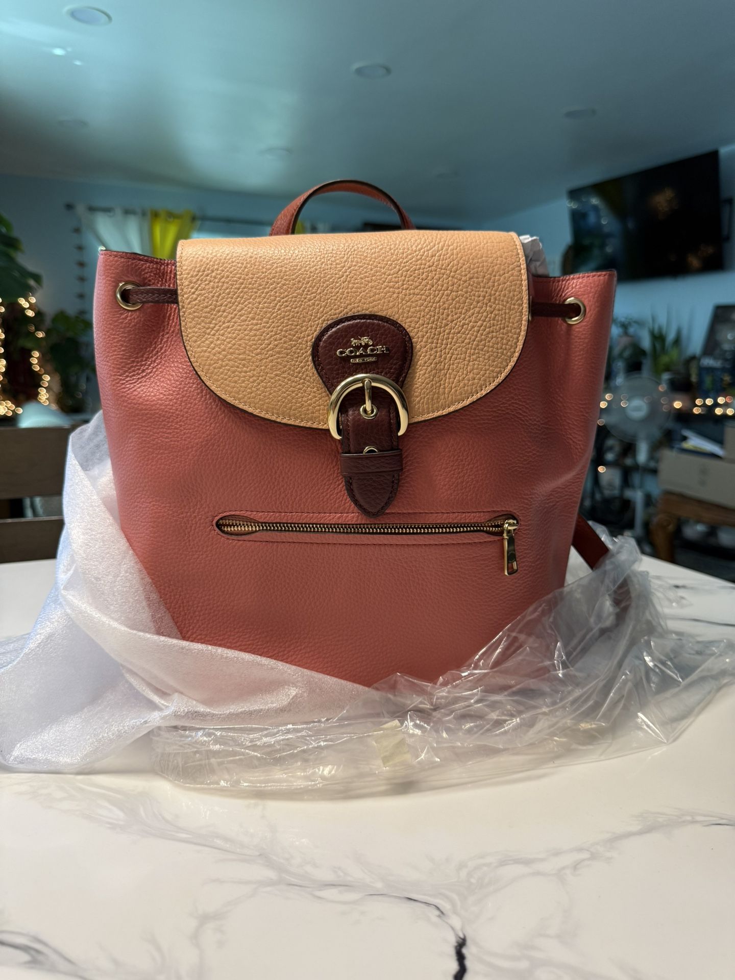 Coach Kleo Pink/Peach Colorblock Pebble Leather Backpack