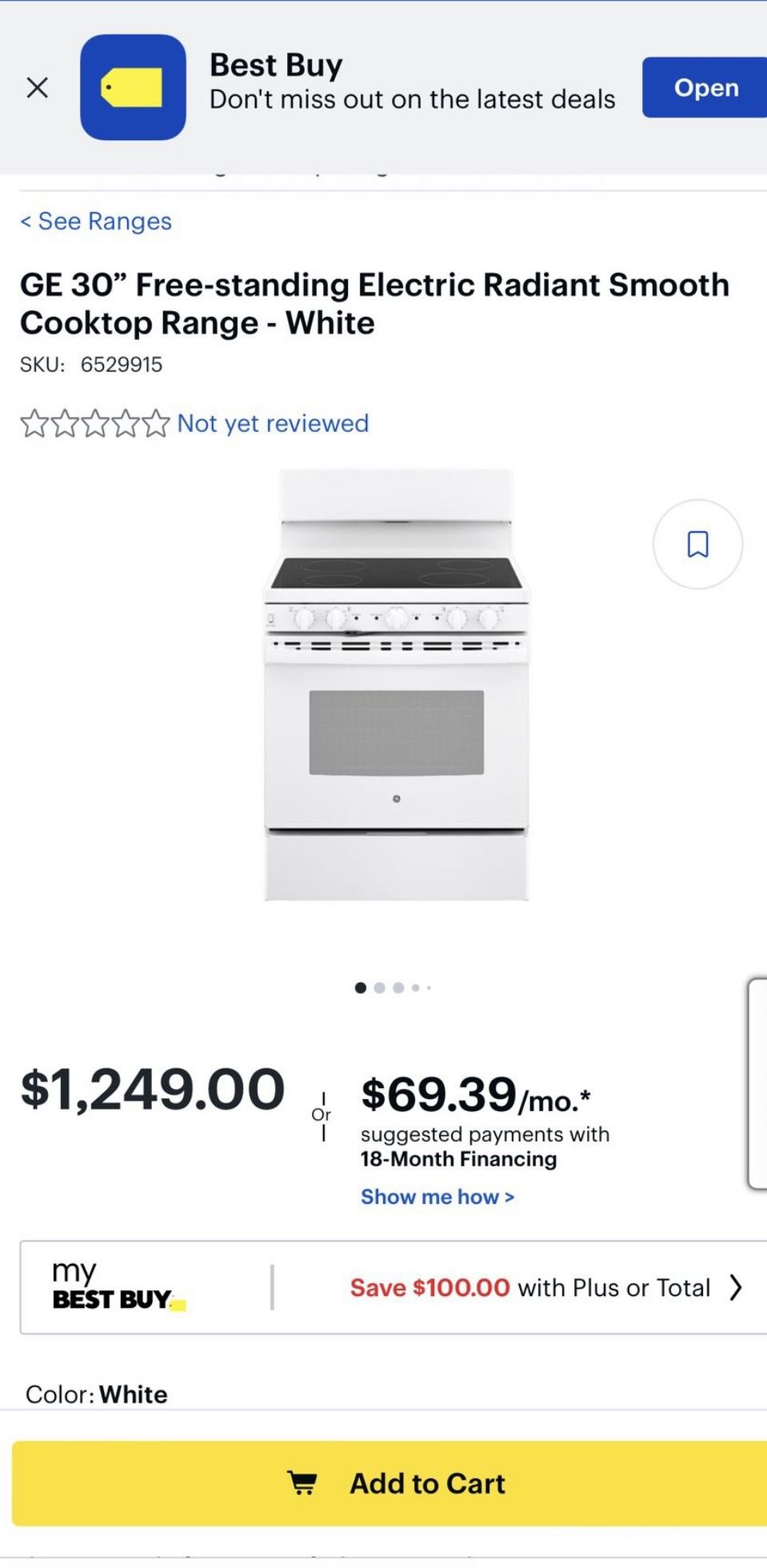 Fully packaged brand new GE electric range. No issues item is in pristine condition can check it out yourself. Full name: Model#: JB480DMWW GE 30* Free-standing Electric Radiant Smooth Cooktop Range