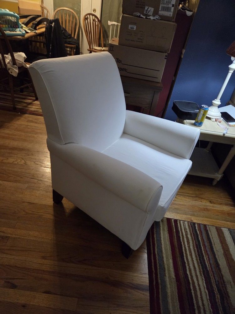 2 pottery Barn Charleston Nursery rockers and 1 ottoman. Cotton upholstery. Chairs 300.00 each ottoman 100.00. Or 500.00 for all. These are well made from Pottery Barn!