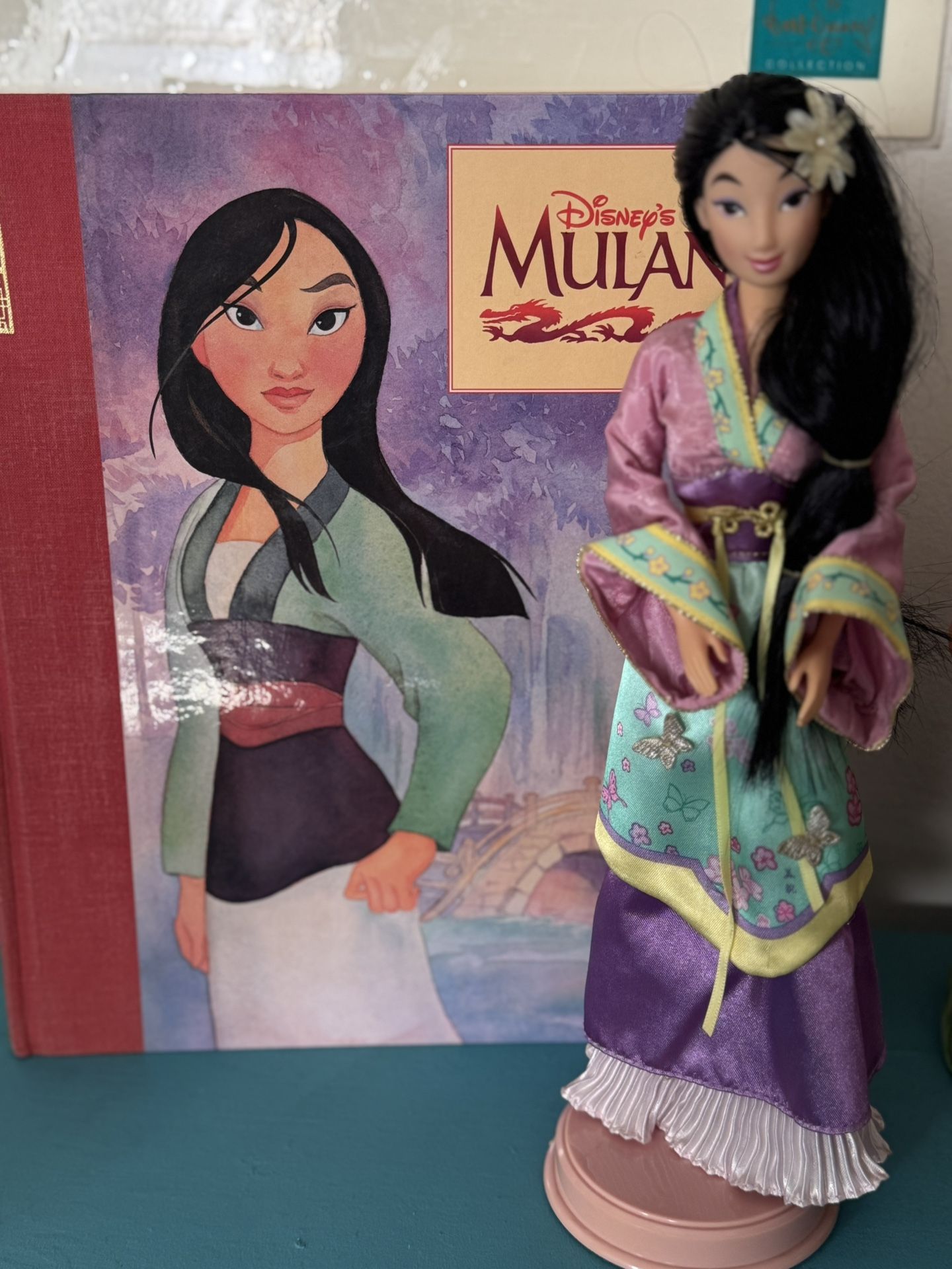 Both items were exclusive to The Disney Store. Doll comes with its original stand and book was a limited quantity only made for the Disney Store. Book never used. Doll was first in the series collection.