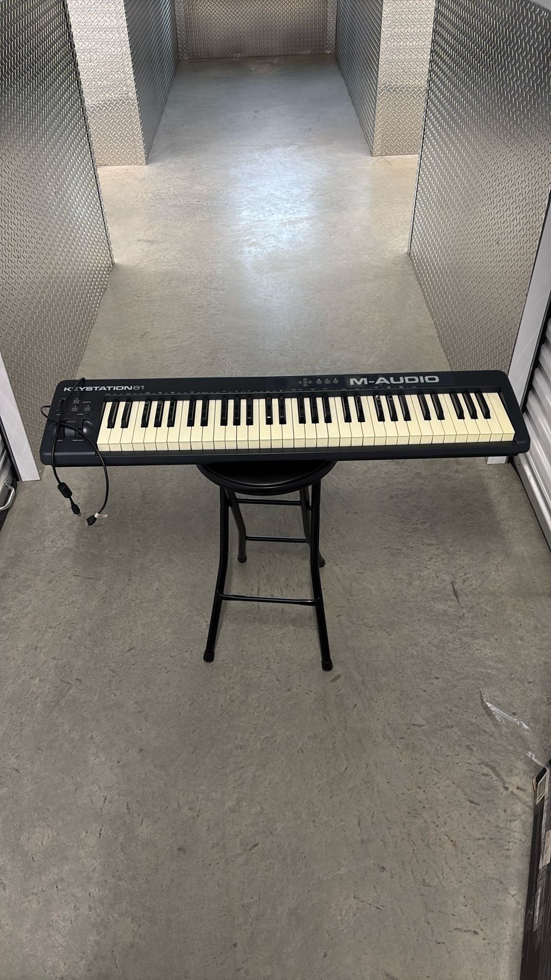 M-Audio Keystation 61 MIDI Keyboard + Cable M-Audio Keystation 61 in great working condition. All keys, buttons, and controls function perfectly. Comes with USB cable—plug and play with Mac or PC. Lightweight and easy to transport, perfect for beginners, producers, or home studios. Details: • 61 full-size, velocity-sensitive keys • USB MIDI controller • Compatible with Mac & Windows • Includes USB cable • Clean, well-maintained Great for music production, recording, or learning piano with software.