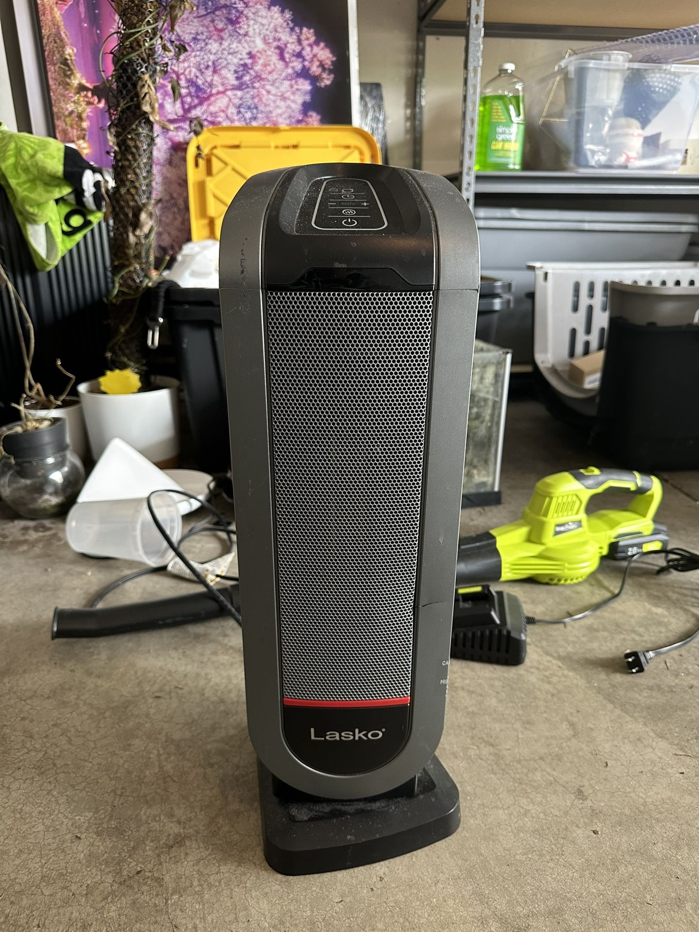 Lasko Tower 22 in. Electric Ceramic Oscillating Space Heater with Digital Display This wonderful heater warms up your space quickly and efficiently. It works great and is perfect for chilly days. There is a small crack, but it doesn’t affect its performance at all.