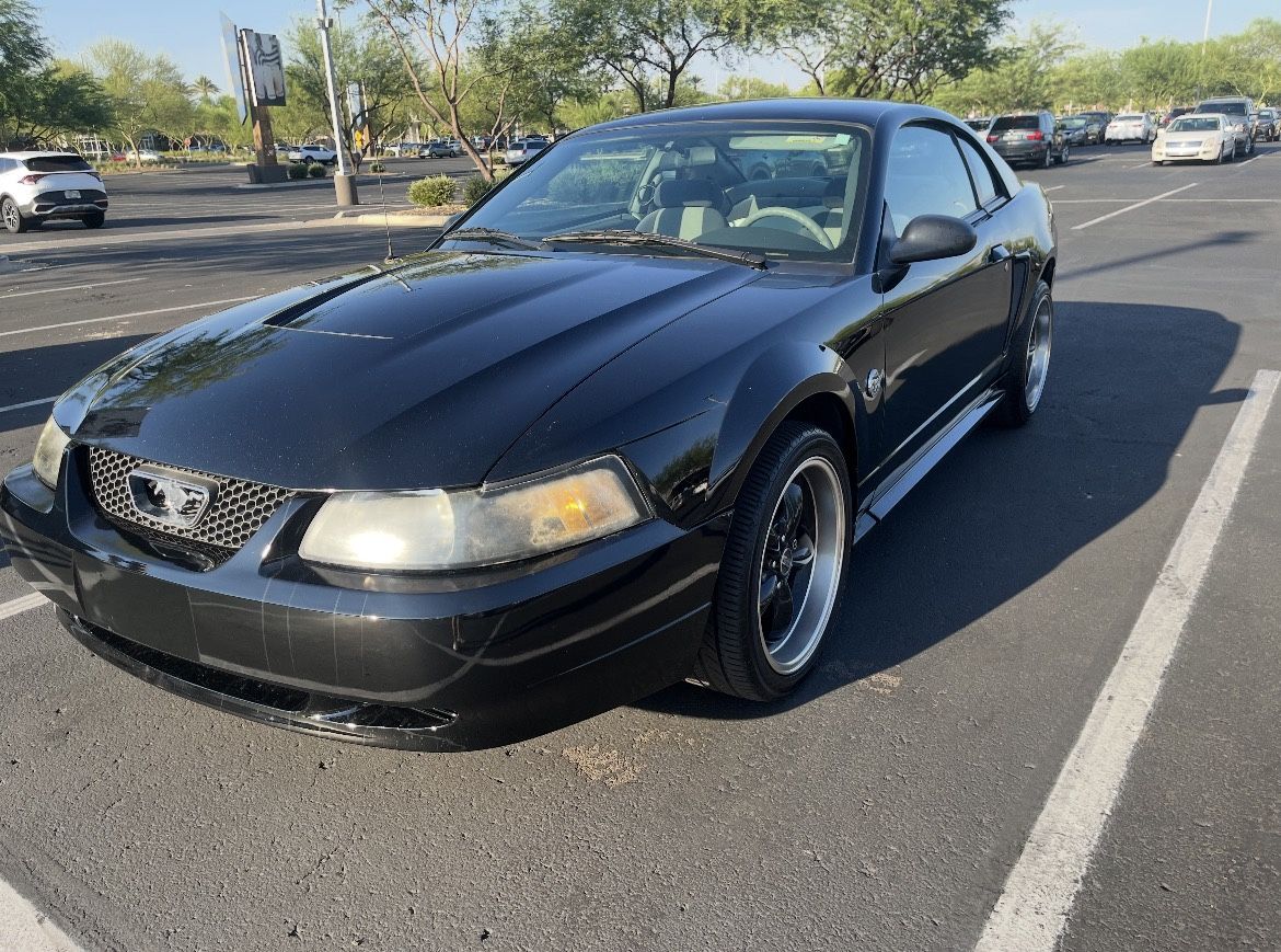 Selling my 2004 Ford Mustang V6 (3.8L) with 113th miles, clean title, and only two previous owners. The car starts, drives, and shifts smooth, A/C and heat work, the interior is in good shape, and it has an upgraded stereo with CarPlay. It does need front tires and an exhaust manifold repair (quoted around $700), and it has some shrunk bondo/body work on the driver side about the size of a basketball (not a fresh dent). NO EMISSIONS NEEDED. Arizona car with no rust. Great daily with a little TLC, first car, or fun project. Cash only.