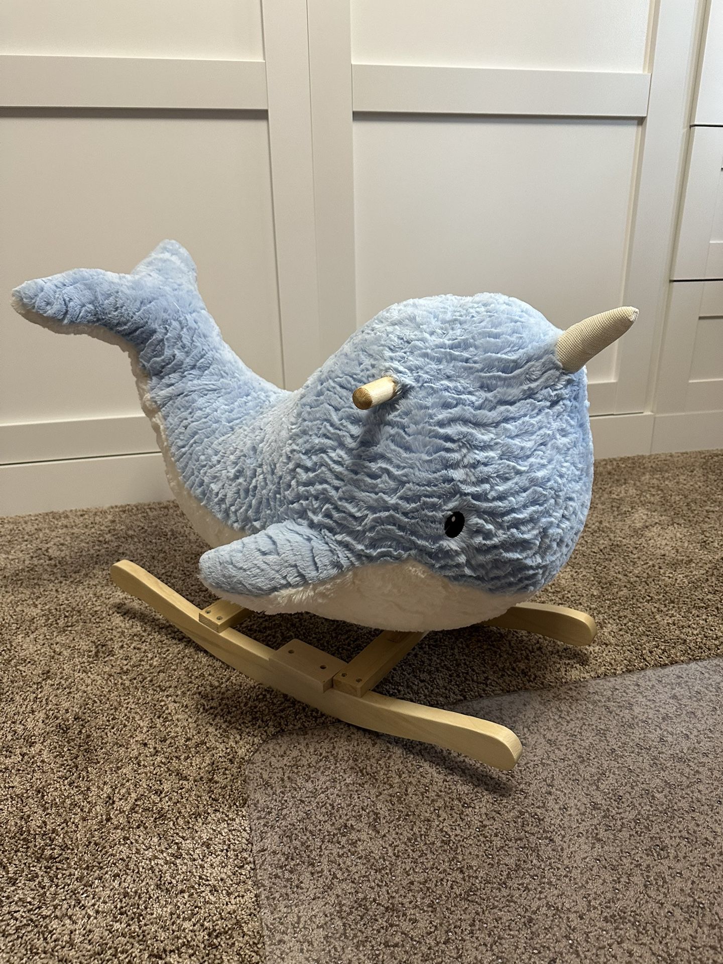 Super soft blue and white narwhal rocker - great for toddlers but my son has outgrown. It’s still in great shape!
