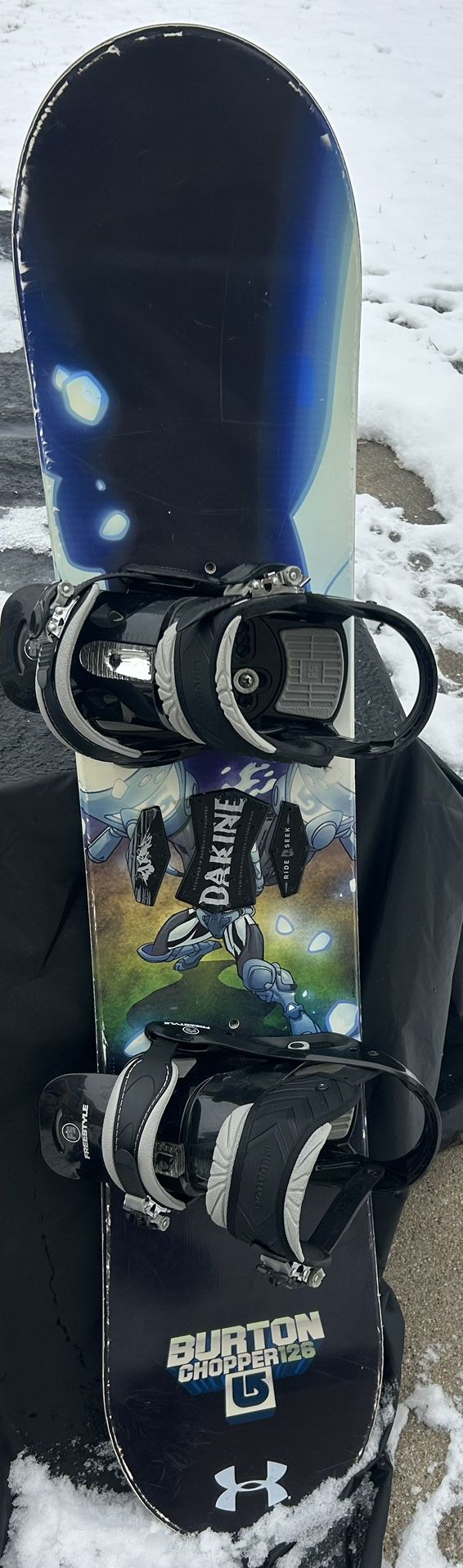 Burton kids snowboard - Chopper 126cm - Burton Freestyle bindings - Note: if it’s listed, it’s available - no reason to waste your time asking. - $150 OR Best Offer Tune & waxed last season, prior to last day of riding Ideal for children about 4’6” to 5’ feet Keep in mind - the shorter the board the easier it is to use: - EXAMPlE: 126cm board - if you have a beginner that’s over 5’ ft by a few Inches - a smaller board may be good to use to learn for a season (if you go a lot, might need to up size after they become proficient). - if you have a child that’s under 4’6”inches a larger board would be more difficult to learn on however, an experienced child may prefer a larger board.